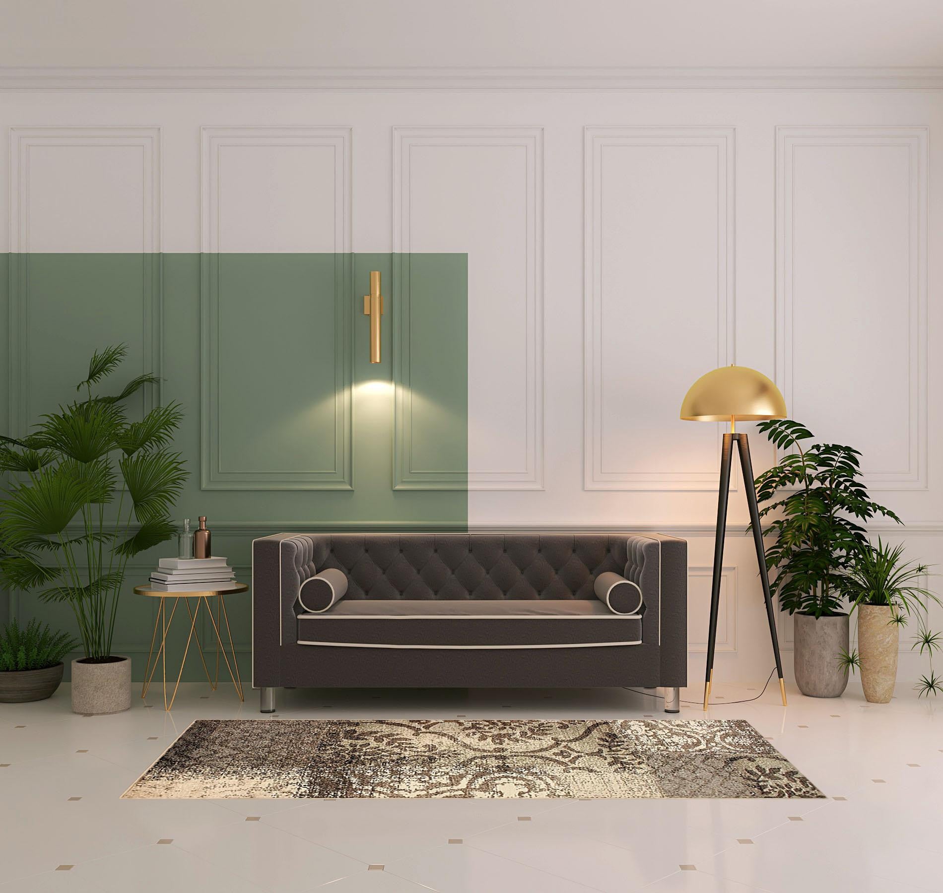 Add great coloration and comfortable texture to your space with this 8' tan and brown damask distressed stain resistant runner rug. This runner shaped rug features a damask design in tan and brown to give it visual interest. A classic shape marries with good looking design for your space Ideal for spaces with kids and pets, this rug is stain resistant to help repel stains and spilled liquids. Place this area rug against a hardwood or tile floor and it will enliven your living space with style and sophistication. 0.31" H x 32.4" W x 96" D