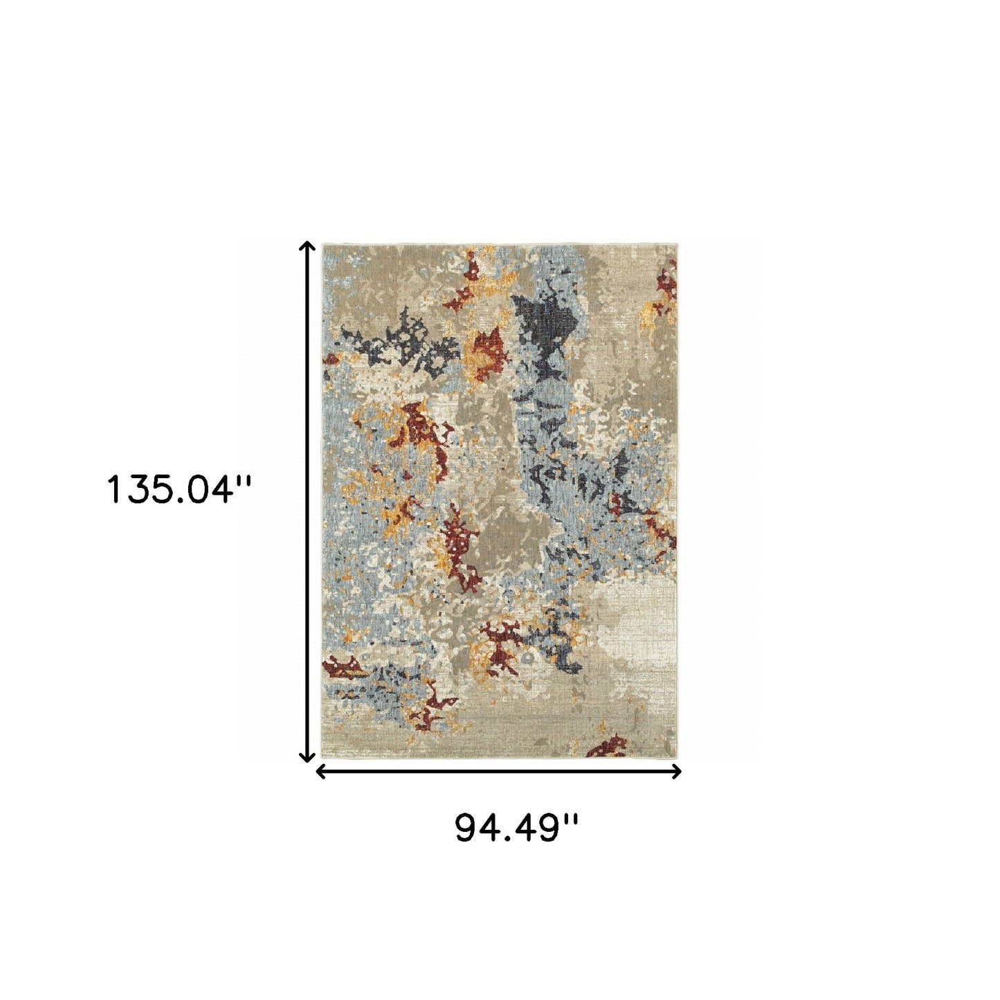 This 8' x 10' beige and blue abstract power loom stain resistant area rug, is a great way to add warmth to a room. This rectangle shaped rug features a abstract design in beige and blue to give it visual interest. A classic shape marries with good looking design for your space Ideal for spaces with kids and pets, this rug is stain resistant to help repel stains and spilled liquids. Area Rugs help to give warmth and sense of home to your space. 0.55" H x 94.49" W x 135.04" D