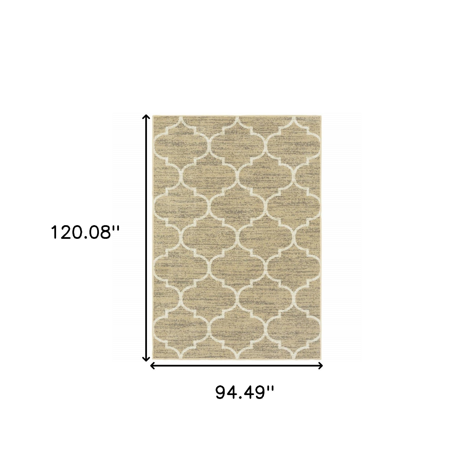 8' X 10' Beige And Ivory Geometric Power Loom Stain Resistant Area Rug