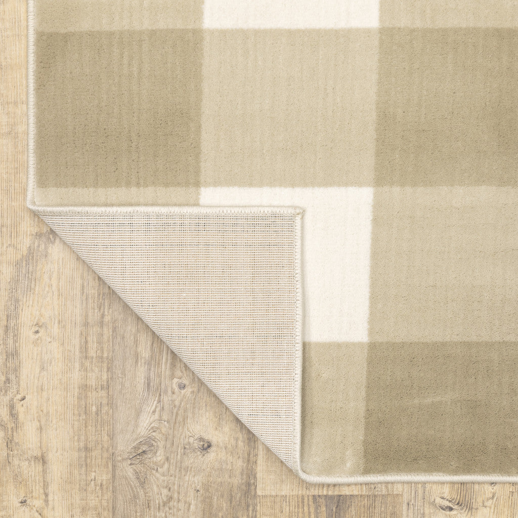 Set an inviting tone in your space with this 8' x 10' beige and ivory geometric power loom stain resistant area rug. This rectangle shaped rug features a geometric design in beige and ivory to give it visual interest. A classic shape marries with good looking design for your space Ideal for spaces with kids and pets, this rug is stain resistant to help repel stains and spilled liquids. Area Rugs help to give warmth and sense of home to your space. 0.39" H x 94.49" W x 120.08" D
