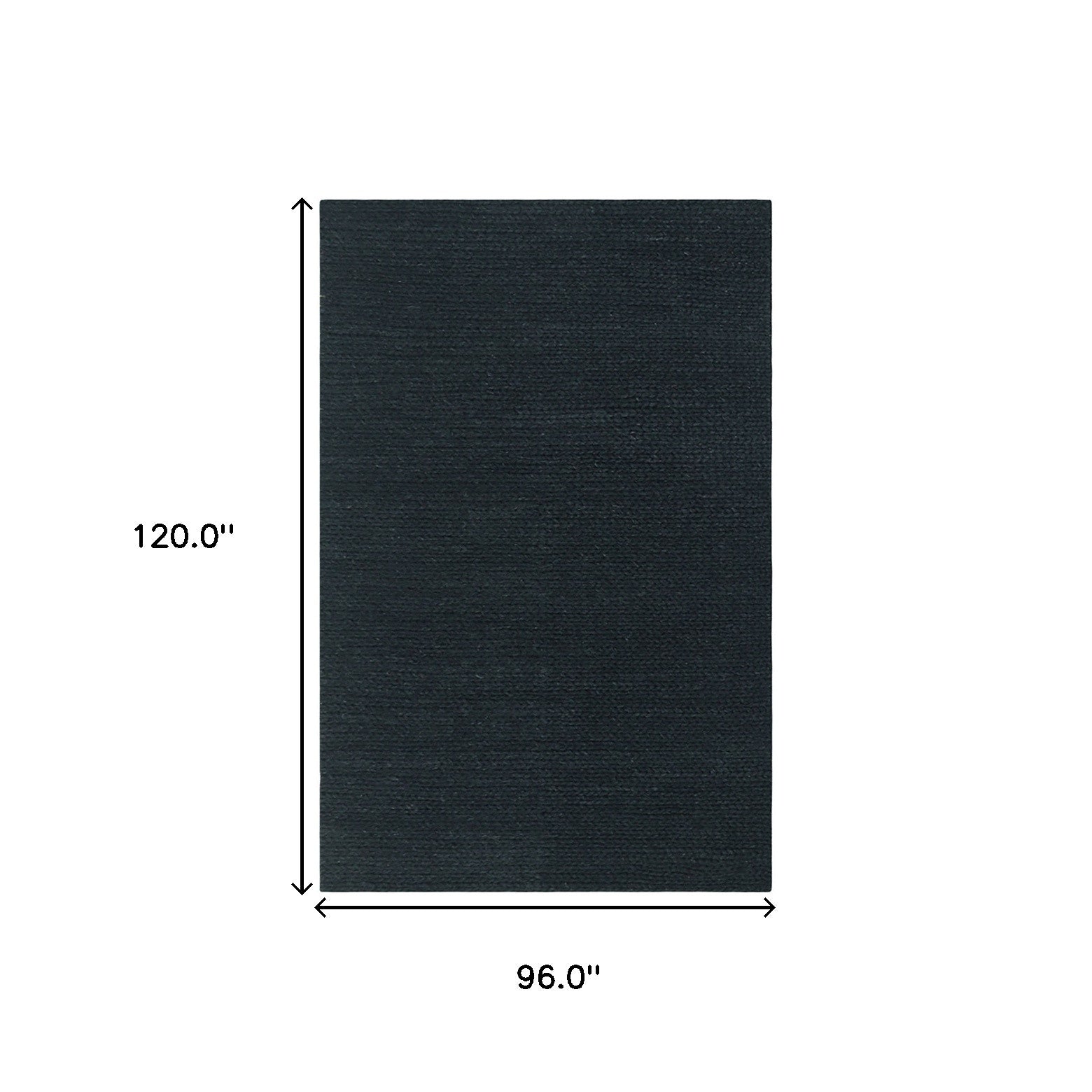 8' X 10' Black Wool Handmade Stain Resistant Area Rug