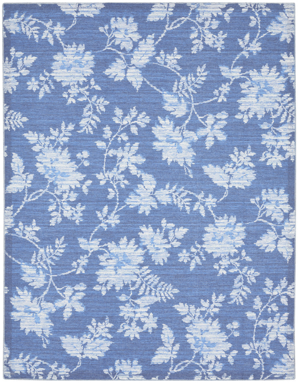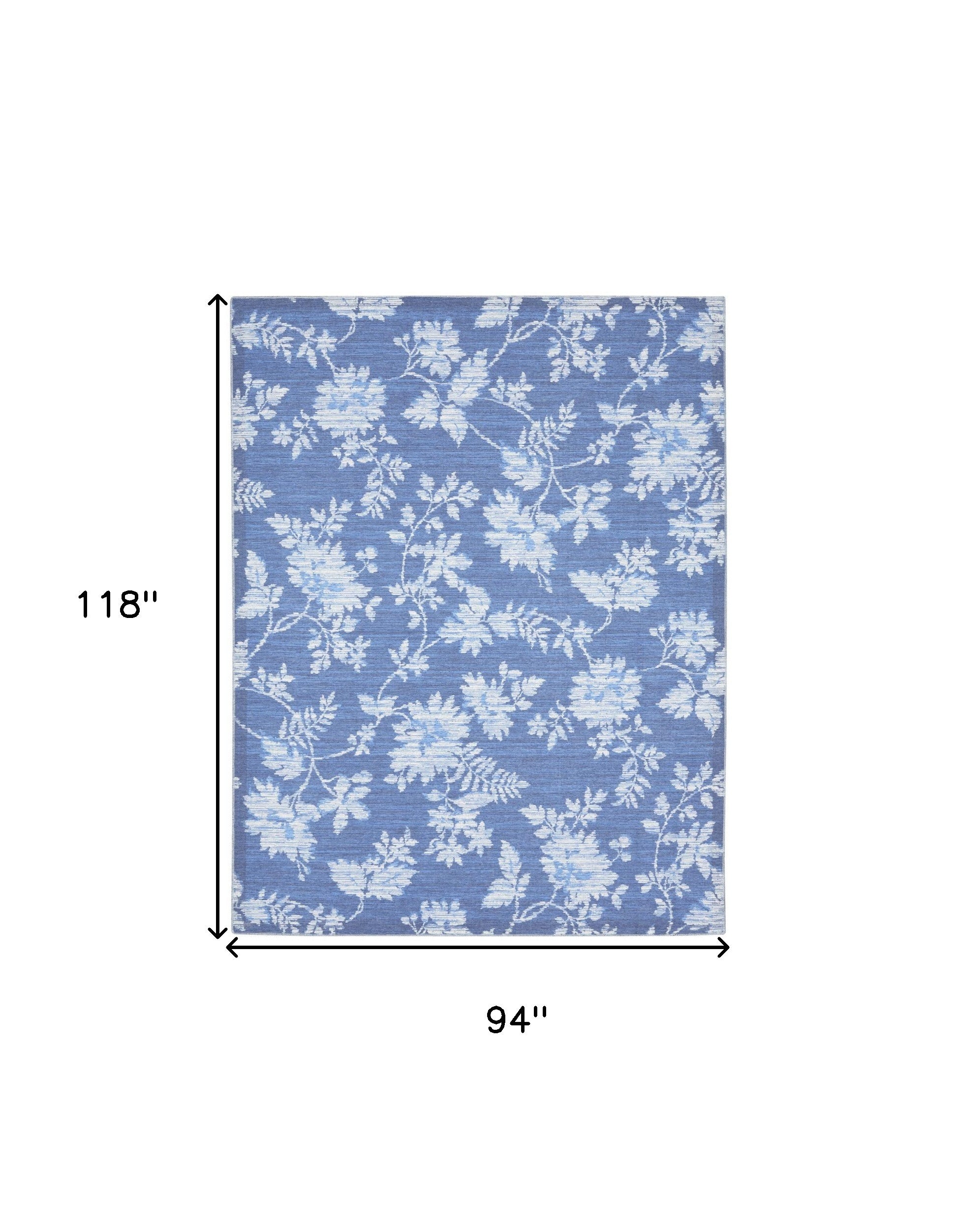 8' X 10' Blue Floral Distressed Washable Area Rug