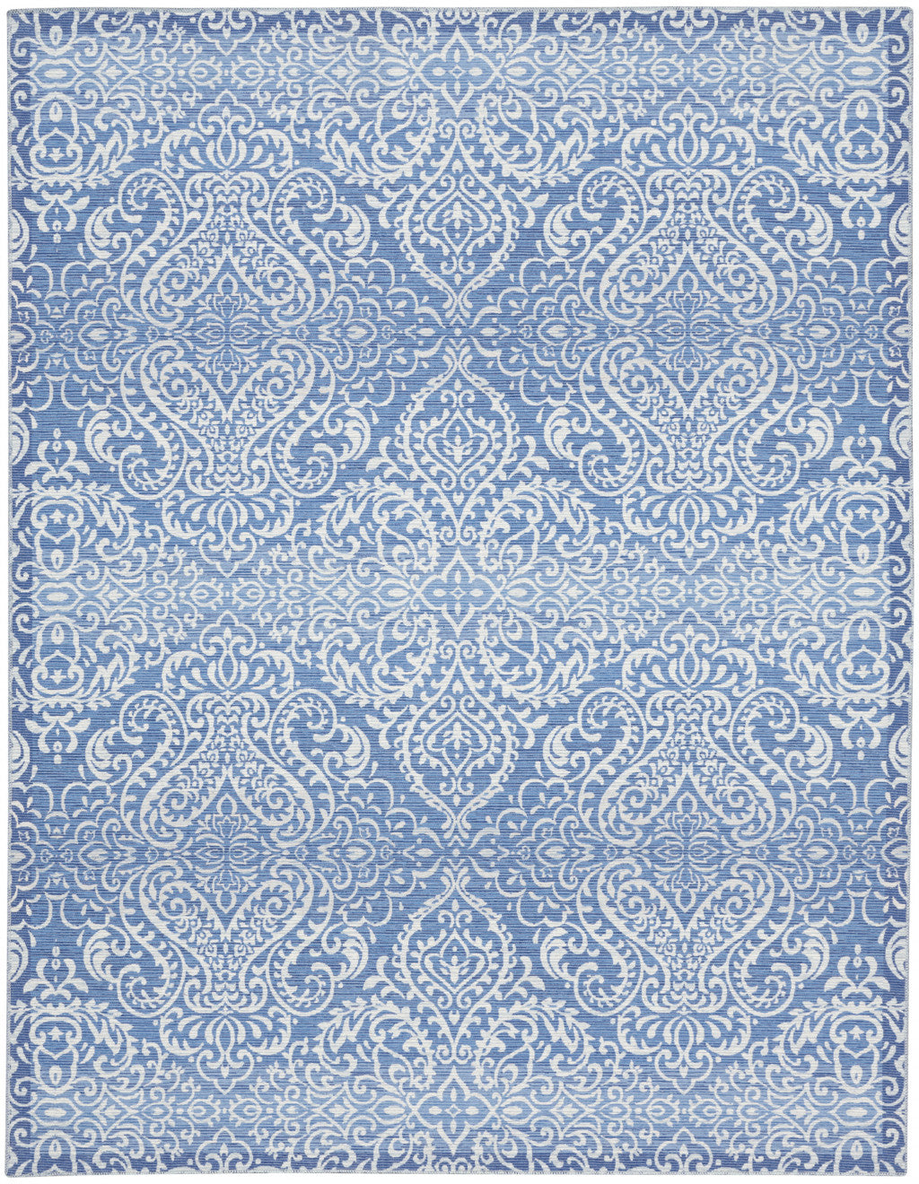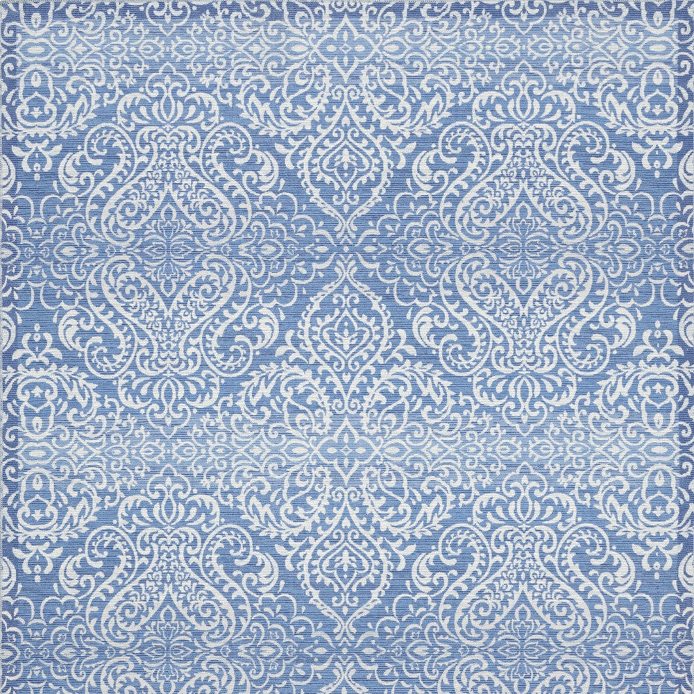 8' X 10' Blue Floral Distressed Washable Area Rug