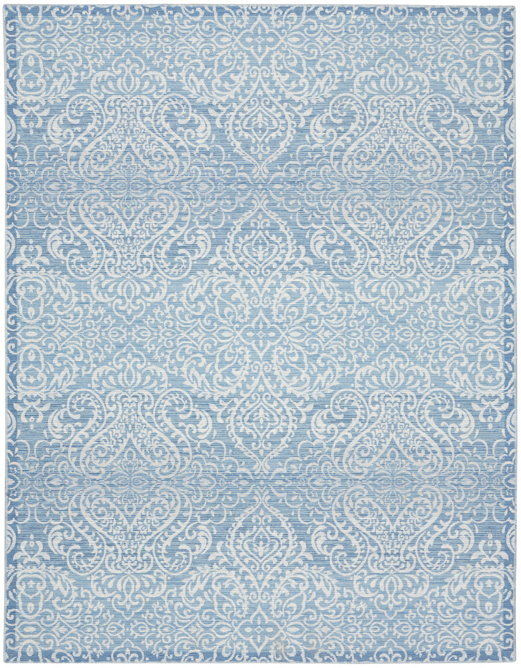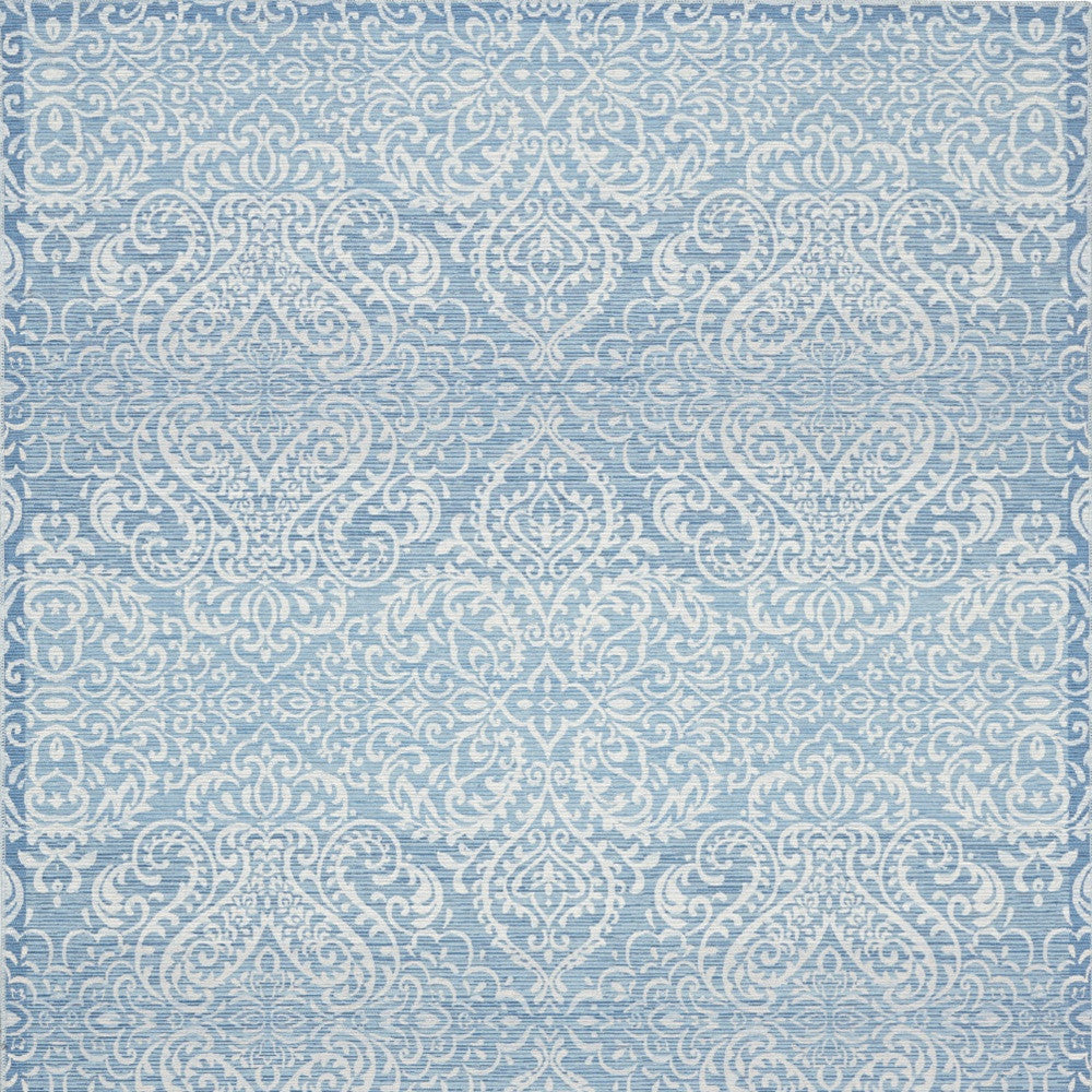 8' X 10' Blue Floral Distressed Washable Area Rug