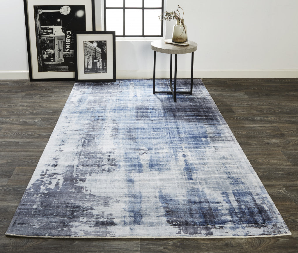 Add great coloration and comfortable texture to your space with this 8' x 10' blue gray and ivory abstract hand woven area rug. This rectangle shaped rug features a abstract design in blue gray and ivory to give it visual interest. A classic shape marries with good looking design for your space Crafted by skilled artisans, this hand woven rug is genuine and unique. No two will be exactly alike. Area Rugs help to give warmth and sense of home to your space. 0.5" H x 96" W x 120" D