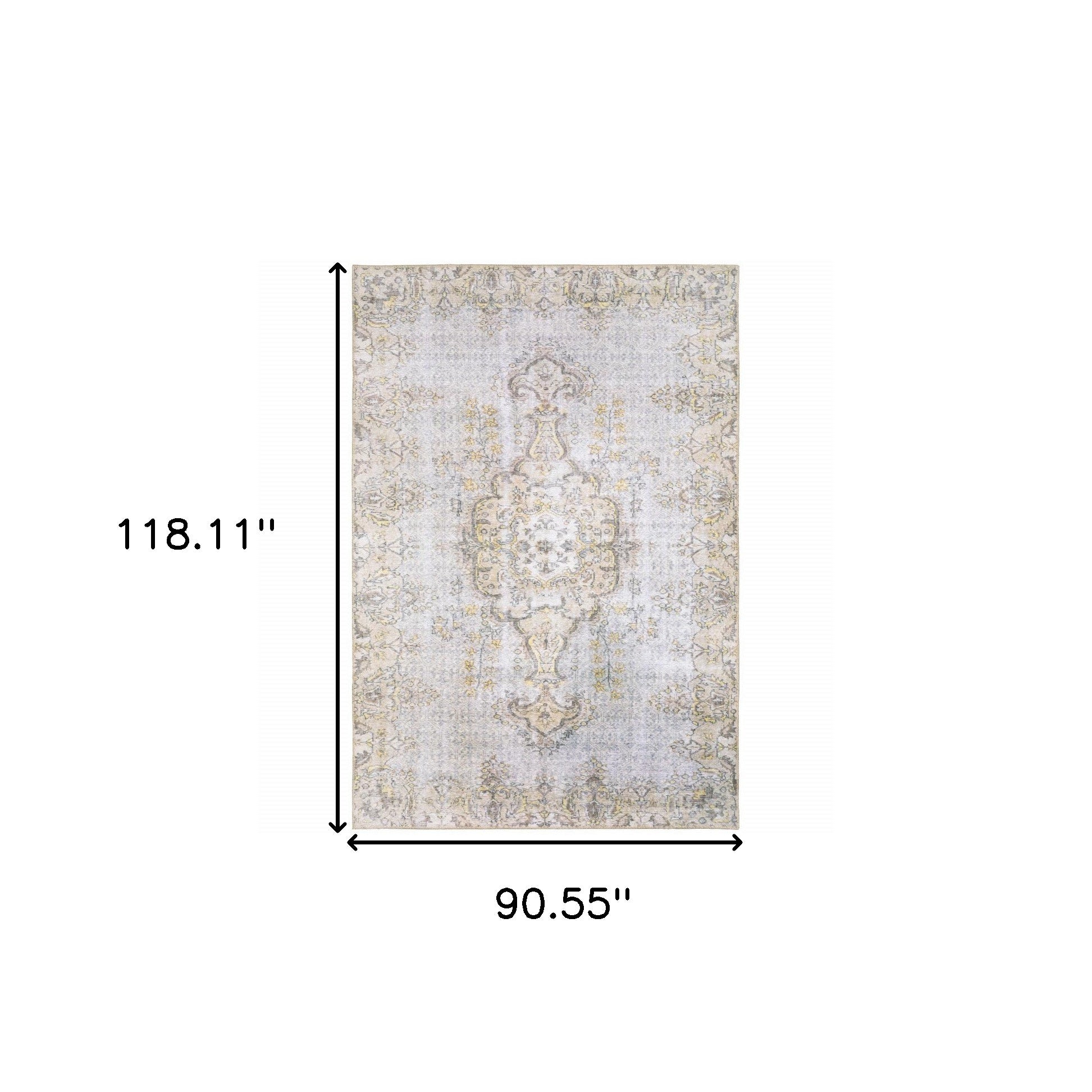 8' X 10' Grey And Gold Oriental Power Loom Stain Resistant Area Rug