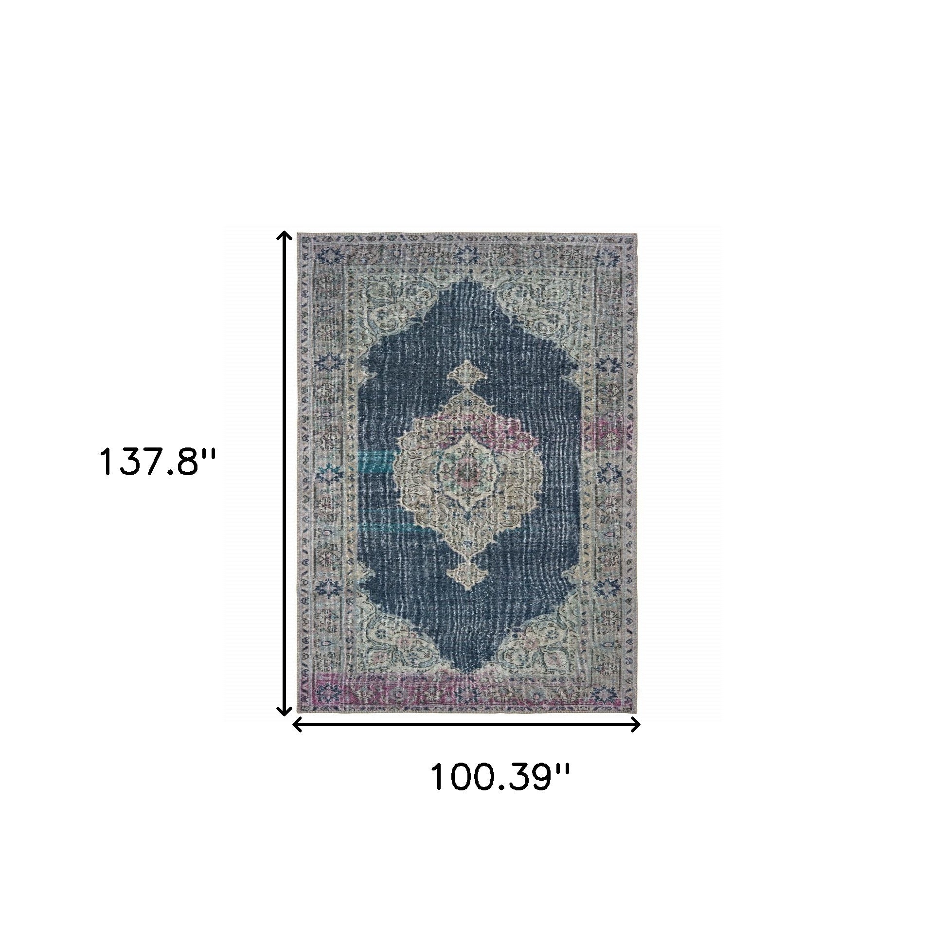 8' X 11' Blue And Grey Oriental Power Loom Stain Resistant Area Rug