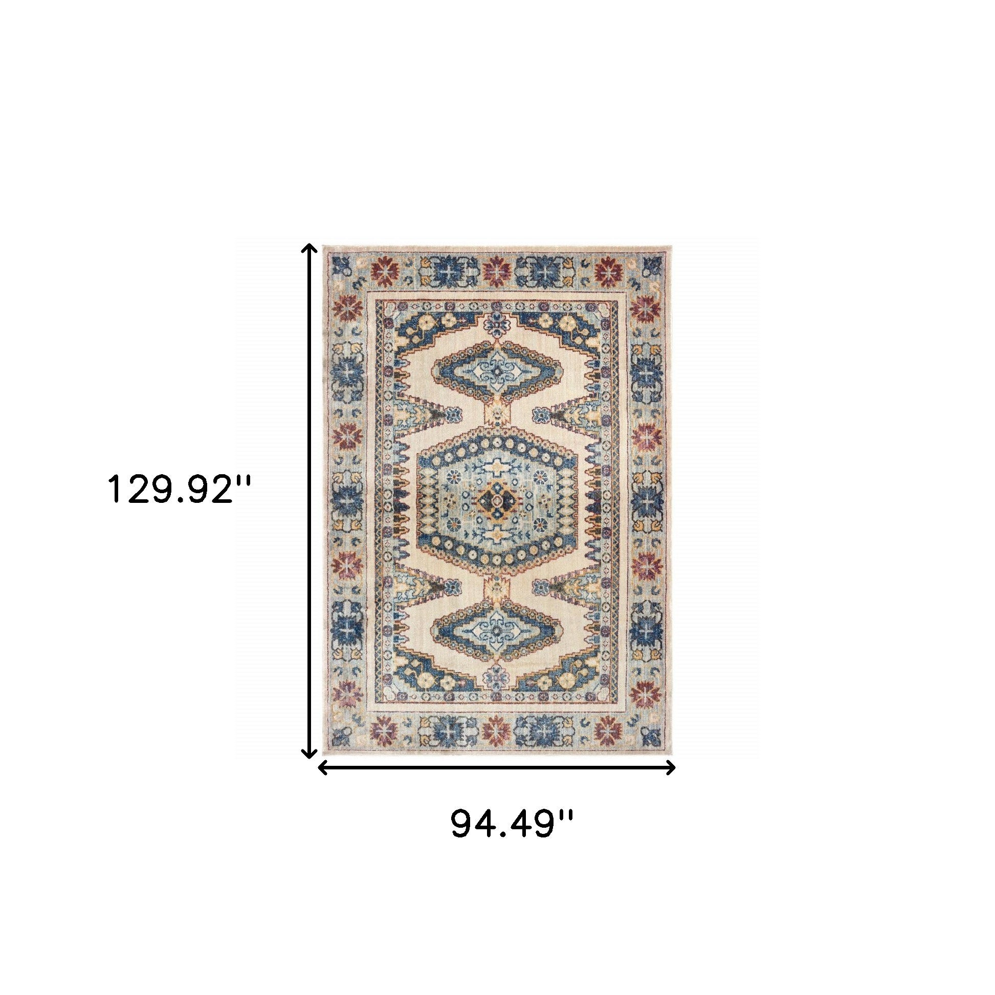 8' X 11' Ivory And Blue Oriental Power Loom Stain Resistant Area Rug
