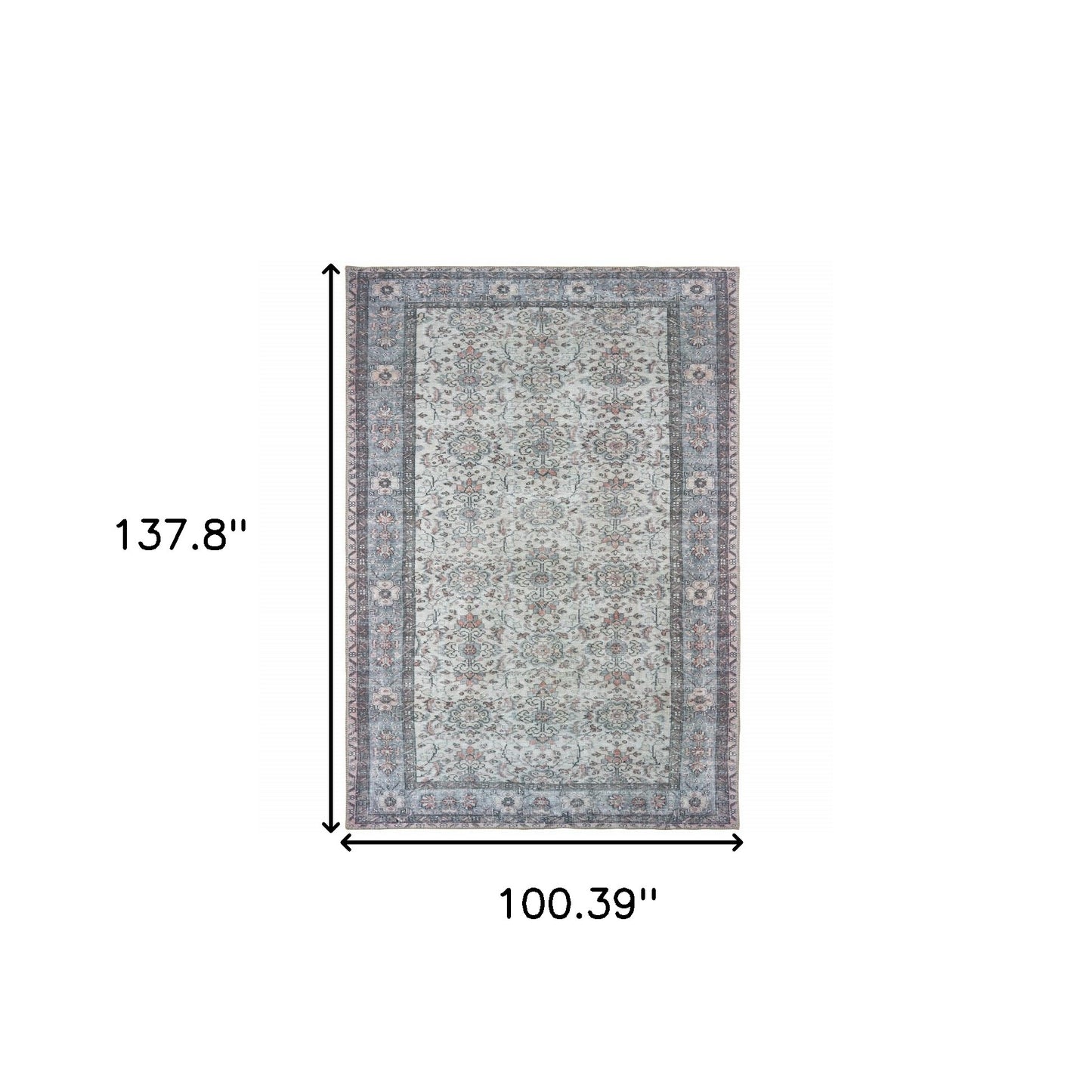8' X 11' Ivory And Blue Oriental Power Loom Stain Resistant Area Rug