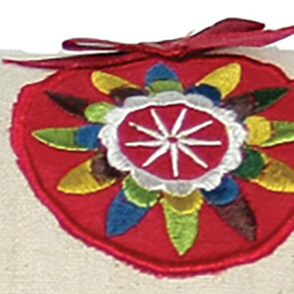 8" X 18" Beige and Red Christmas Ornaments Linen Blend Zippered Pillow With Embroidery