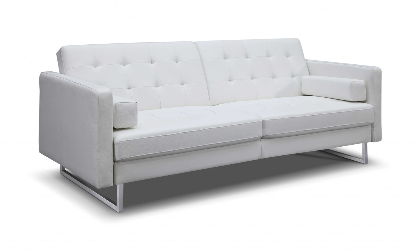 80" White Faux leather and Silver Sofa