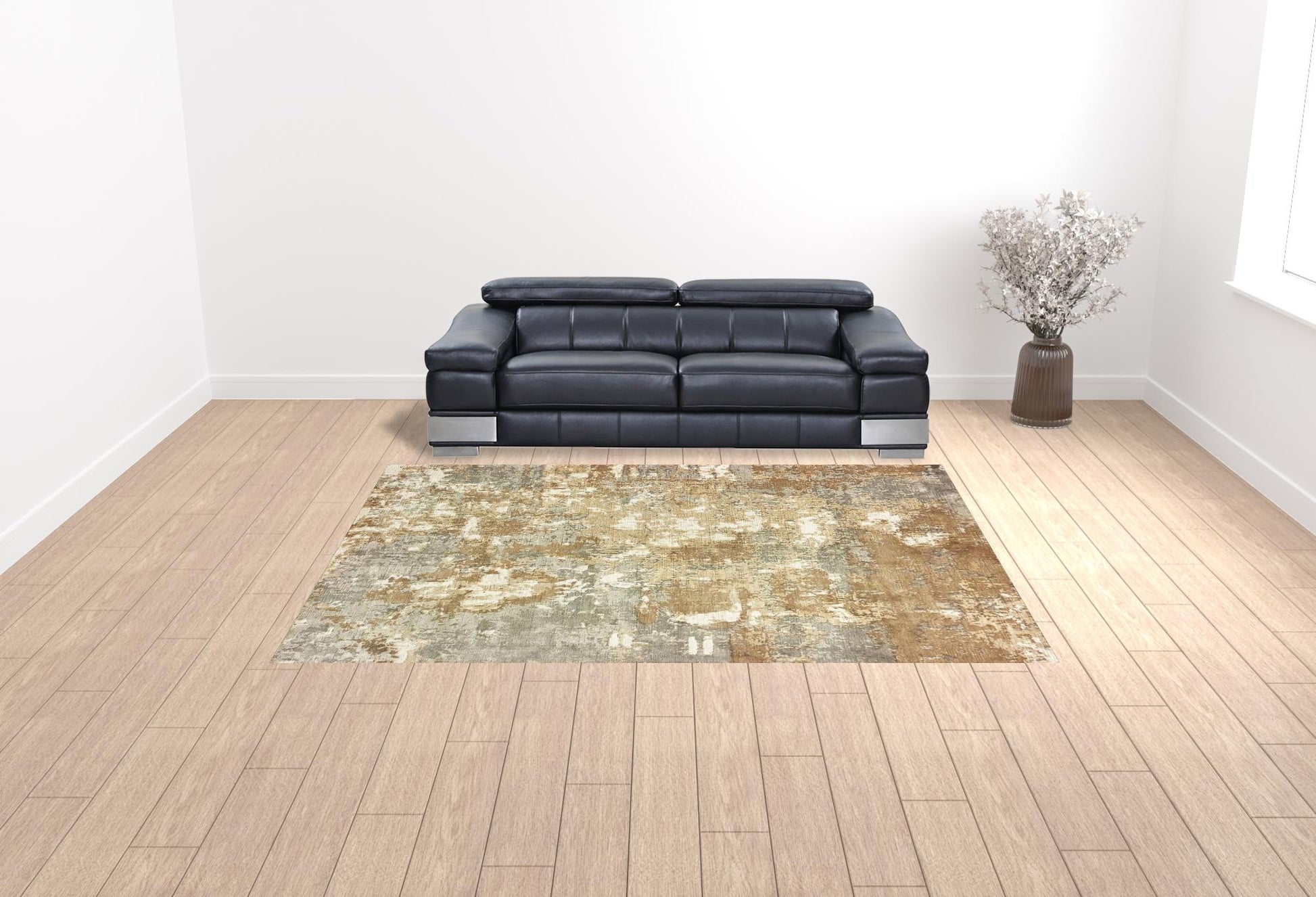 9' X 12' Grey And Brown Abstract Hand Loomed Stain Resistant Area Rug