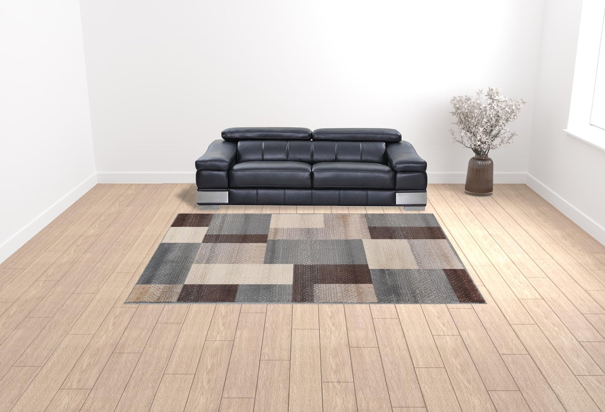 9' X 12' Grey Patchwork Power Loom Stain Resistant Area Rug