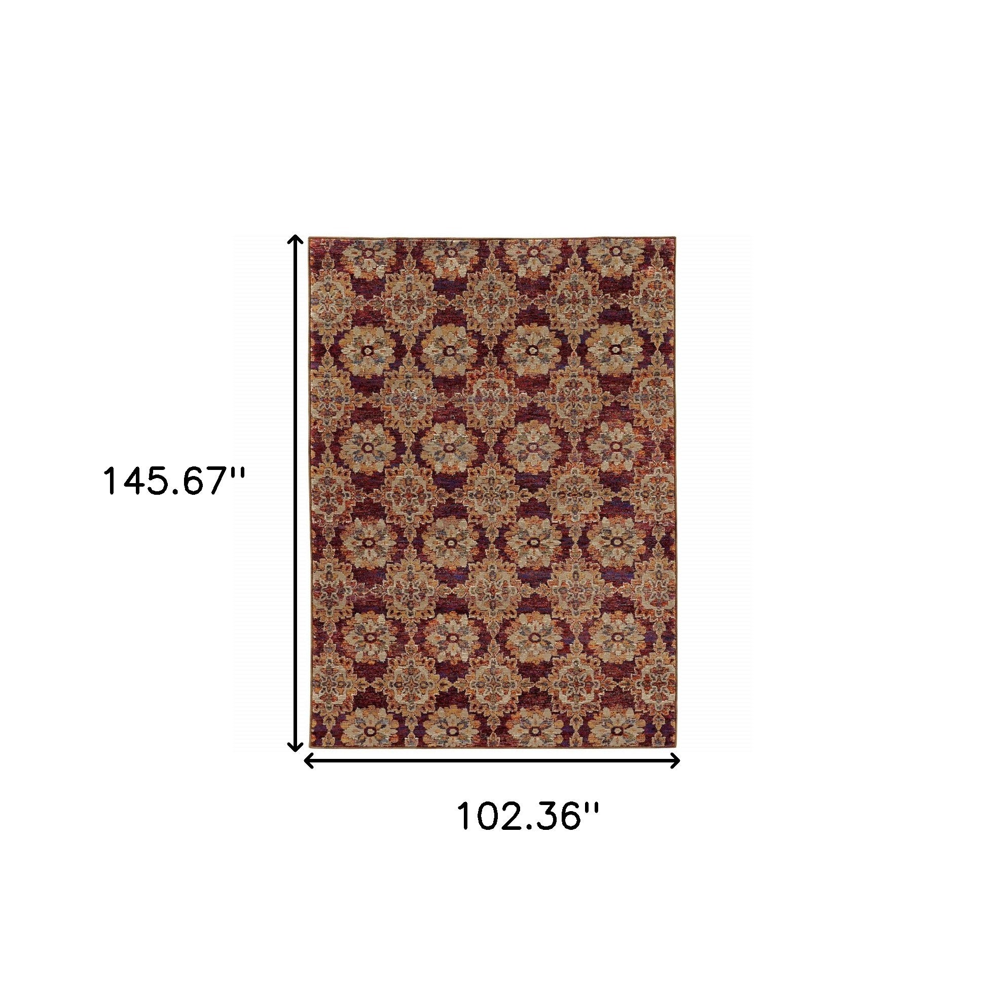Set an inviting tone in your space with this 9' x 12' red and gold oriental power loom stain resistant area rug. This rectangle shaped rug features a oriental design in red and gold to give it visual interest. A classic shape marries with good looking design for your space Ideal for spaces with kids and pets, this rug is stain resistant to help repel stains and spilled liquids. Place this area rug against a hardwood or tile floor and it will enliven your living space with style and sophistication. 0.55" H x 102.36" W x 145.67" D