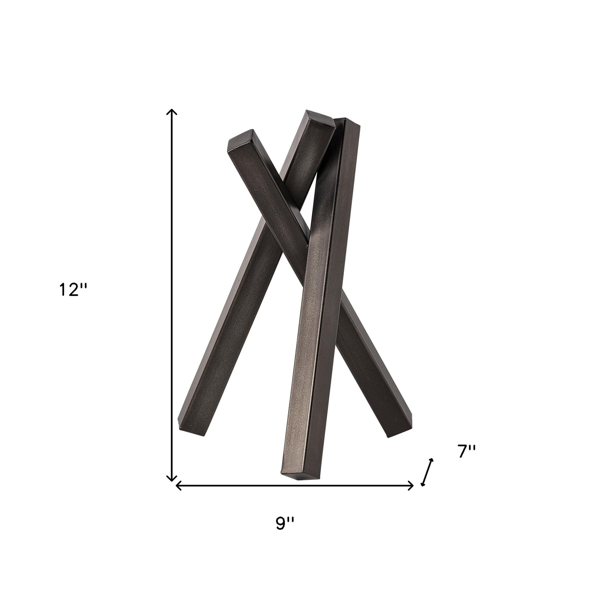 This Abstract Black Metal Geometric Decor Piece is the perfect way to add some minimal contemporary design to your home. This decor piece is made from solid metal and features three square shaped rods that intersect at two different points. The matte black color of this decor piece fits in perfectly with the minimal look and will elevate any space you use it in. You can use this decor piece anywhere in your home without worrying about any clashing colors. You can use this decor piece in conjunction with other colored geometric pieces or on its own and it will look great nonetheless. 12" H x 7" W x 9" D
