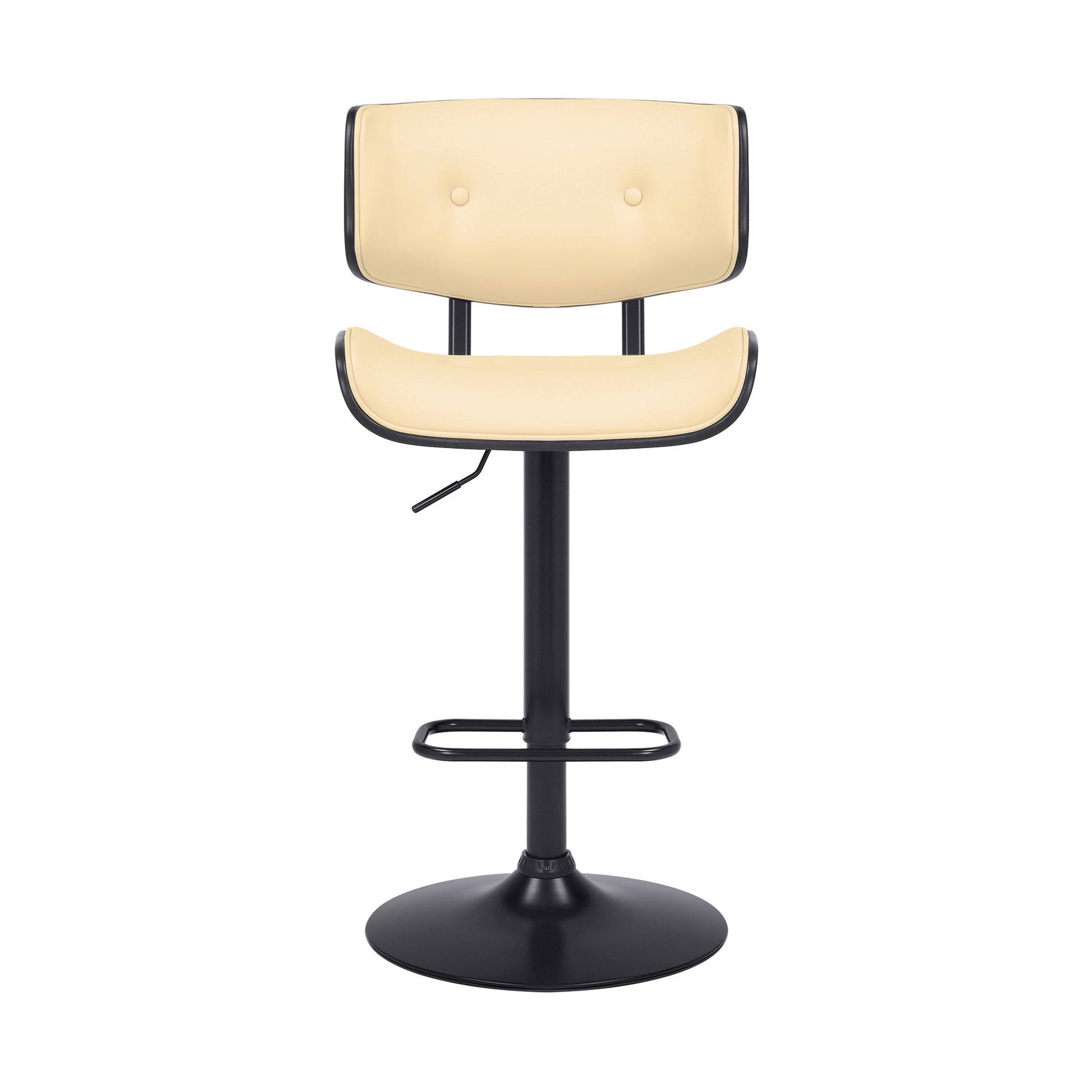 Adjustable Cream Tufted Faux Leather and Black Wood Swivel Barstool.