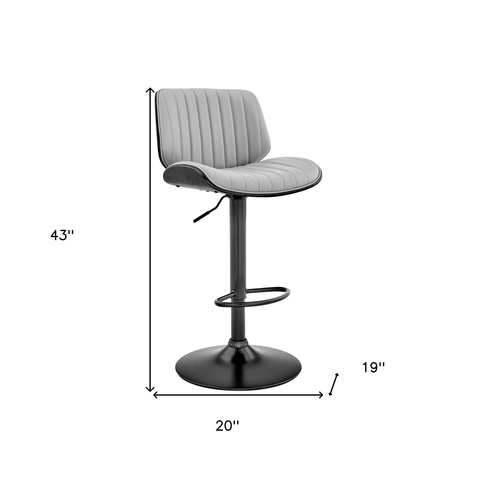 Adjustable Gray Faux Leather Black Steel and Wood Bar Stool