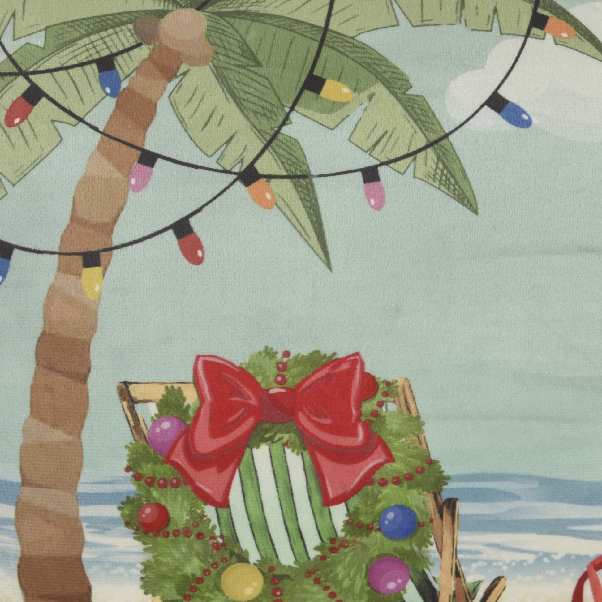 Bring some tropical Christmas spirity into your home with this square Aloha Christmas Palm Tree Light Up Throw Pillow. This pillow is perfect for those who miss summer this holiday season and want to add a little bit of that warm weather and sunshine back into your home. It has soft, natural hues, with an image of the beach, palm tree, and holiday decorations. It also has a soft polyester texture, that makes it perfect to cozy up with. It creates a festive vibe and gets you excited for the holiday season with its two light up settings. 18" x 18"x 5"