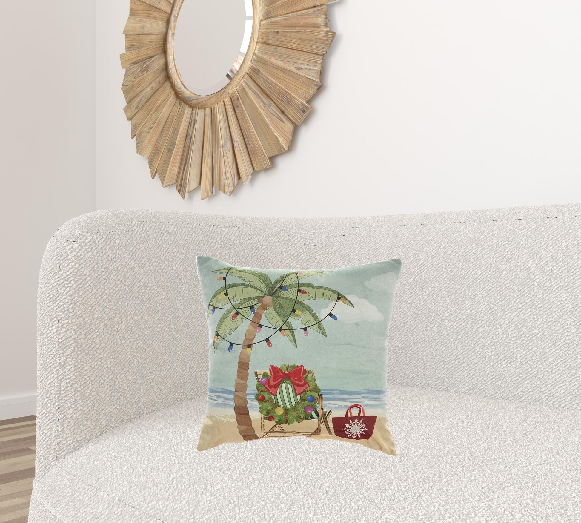 Aloha Christmas Palm Tree Light Up Throw Pillow