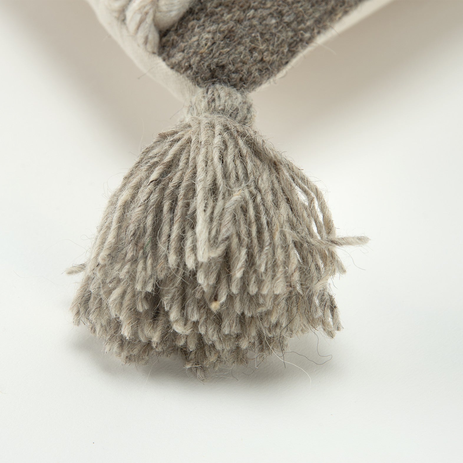 Intensify a sense of artistry and bohemian essence with the addition of this Beige Brown Braided Stripe Lumbar Pillow in your living space. The beige-brown neutrals are beautifully segmented in a harmonious combination with hand-twisted and heathered color braided stripes in between for added texture and dimension. The boho-inspired tassels on the corners add a traditional touch to the pillow with a countryside appeal. Crafted from recycled cotton fiber with braided and tassel embellishments, the pillow is heavily textured and durable enough to use for years with satisfaction. The poly-filled pillow features the same solid back and a removable cover to make the cleaning hassle-free. Emphasize a unique rustic yet bohemian aesthetic into your home with this throw pillow that is meant to stand out on its own. 26” x 14” x 6.25”