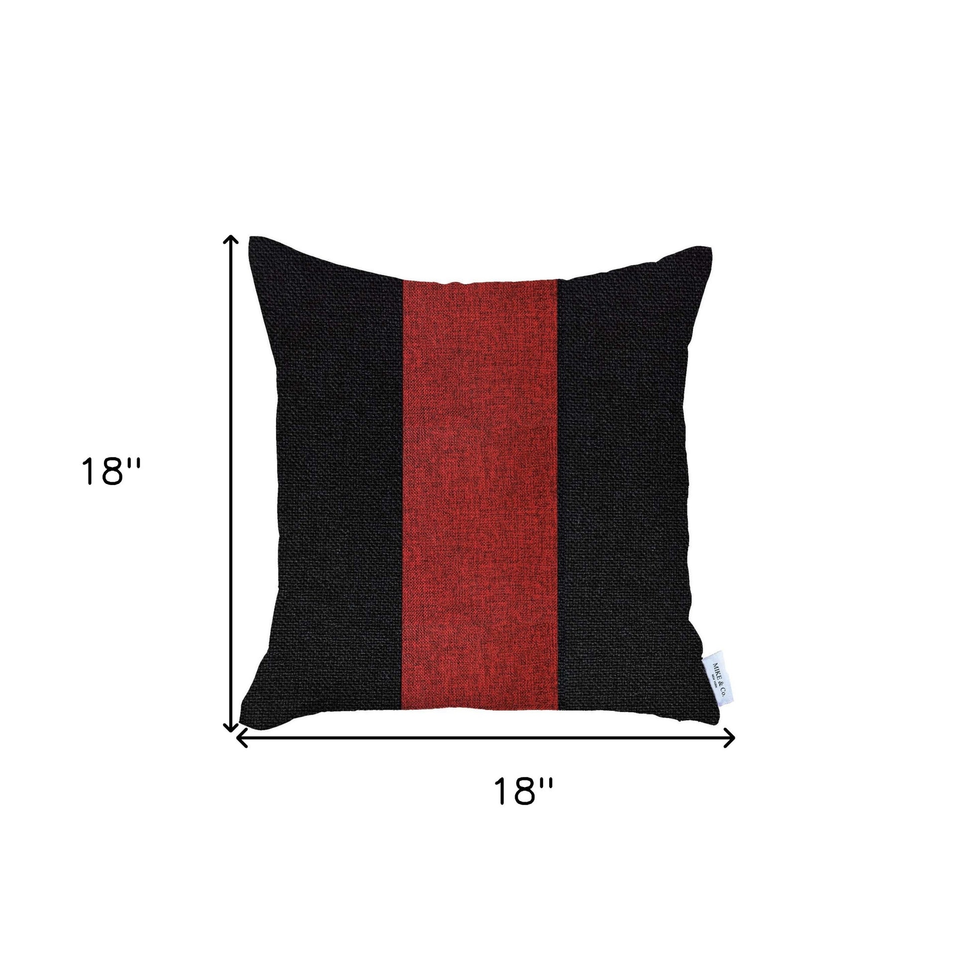 Add depth and timeless elegance to your modern living space with this Black and Red Centered Strap Throw Pillow. The matte black base looks gorgeous with that ruby red midsection to accentuate a bold yet exquisite vibe in the room. Handmade in Turkey with 100% polyester fabric which is OEKO-TEX Standard 100 certified to make sure highest product safety and long-lasting durability. This pillow should only be spot cleaned to remove stains and keep its sheen for long. The all-around zipper closure provides a seamless finish that feels super smooth and unified on the touch. You will experience a cozy feel every time you hold this pillow as it is filled with a high-quality soft poly filling inside. Transform your living room with this modern throw pillow that will grab the attention of the guests as soon as they step into your home. 18” x 18” x 1”