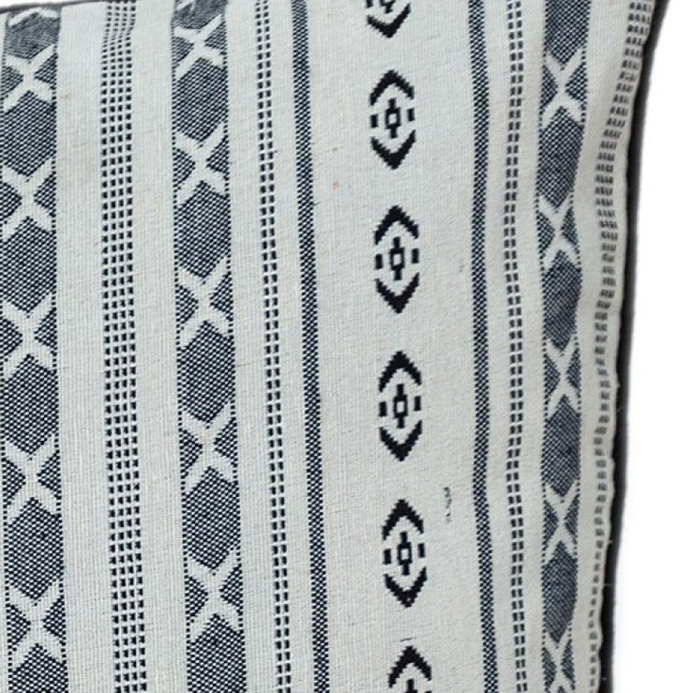 A beautiful example of a trendy and versatile design, the Black and White Abstract Accent Pillow is the only thing you need to add a modern element to your living space. Made of 100% cotton, this pillow features an abstract design on a half-black and half-white front, and the patterns on it deliver a rustic feel. There is a zipper closure on the back and the pillow needs to be dry cleaned or spot cleaned. 20” x 20” x 5”