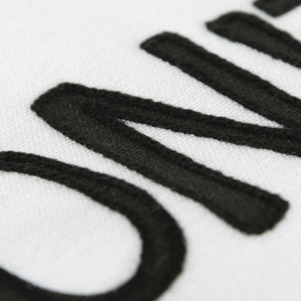 We can all relate to the sentiment of this Black and White Flagship Message Throw Pillow that upholds a message we have all faced in 2020. Both sides are printed and embroidered in a unique fashion, with one side saying ‘PANIC’ while the reverse side comforts us with the words ‘DON’t PANIC’, making us realize that we’re all in this together. The pillow is flippable and holds two messages, with a small flange framing the pillow for a clean and flawless outline. Sporting a durable cotton duck fabric on both front and back with a hidden zipper closure for convenience. Simple yet impactful in its flagship message of the pandemic, this decorative throw pillow will be a unique addition to your modern home. 20” x 20” x 6.25”