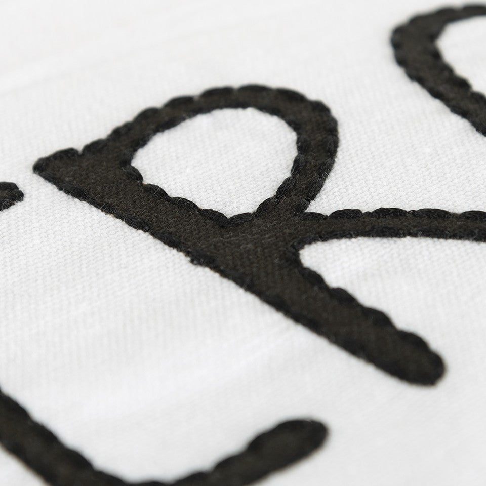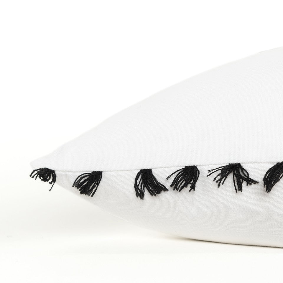 Expressing cheery humor in its printed words, this Black and White Irony Fun Message Throw Pillow will uplift the ambiance of your living room in an instant. The classic color palette featuring a white base with a fun message in black that says ‘Irony is the opposite of wrinkly’ sets an inviting tone in the room. Seed embroidered accents around some letters add texture to the pillow while the small hand-tied tassels frame the pillow on the sides for visual appeal. Crafted from high-quality cotton fabric with a poly-filled insert, the pillow is soft and durable to last long. The solid coordinating cotton back comes with a hidden zipper closure for ease of cleaning. Pair this pillow with your modern or contemporary decors to spruce up your space with positive and playful energy. 20” x 20” x 6.25”