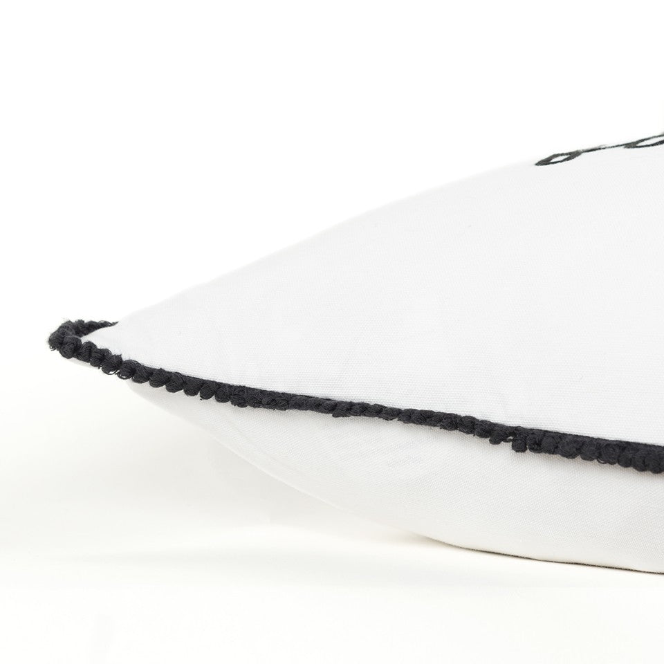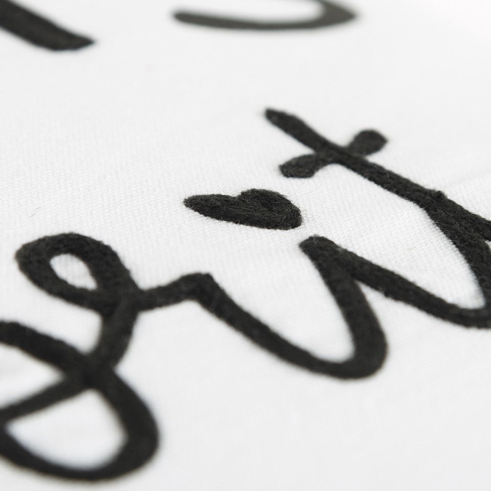 Representing a wonderful sentiment in a monochrome color palette, this Black and White Moms Favorite Modern Throw Pillow will be a lovely addition to any interior décor. The crisp white base flaunts the words ‘Mom’s favorite’ in an eye-catching black font to express a warm emotion of being mom’s favorite. The embroidered accents on the lettering add dimension and texture to the piece while the contrast black welting in yarn looped bubble woven lace adds a playful charm to the piece. The pillow is constructed from cotton duck fabric with a polyfill insert to ensure durability and softness with a fluffy look. The back of the pillow features the same cotton fabric with a hidden-button closure for easy filling and cleaning. Display this pleasant piece of décor in your modern home to combine style, sophistication, and sentiment all in one. 20” x 20” x 6.25”
