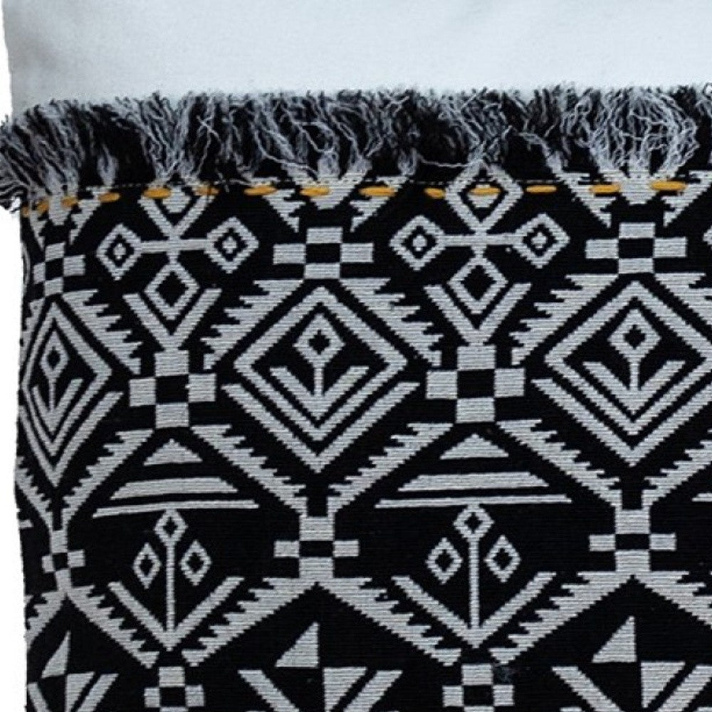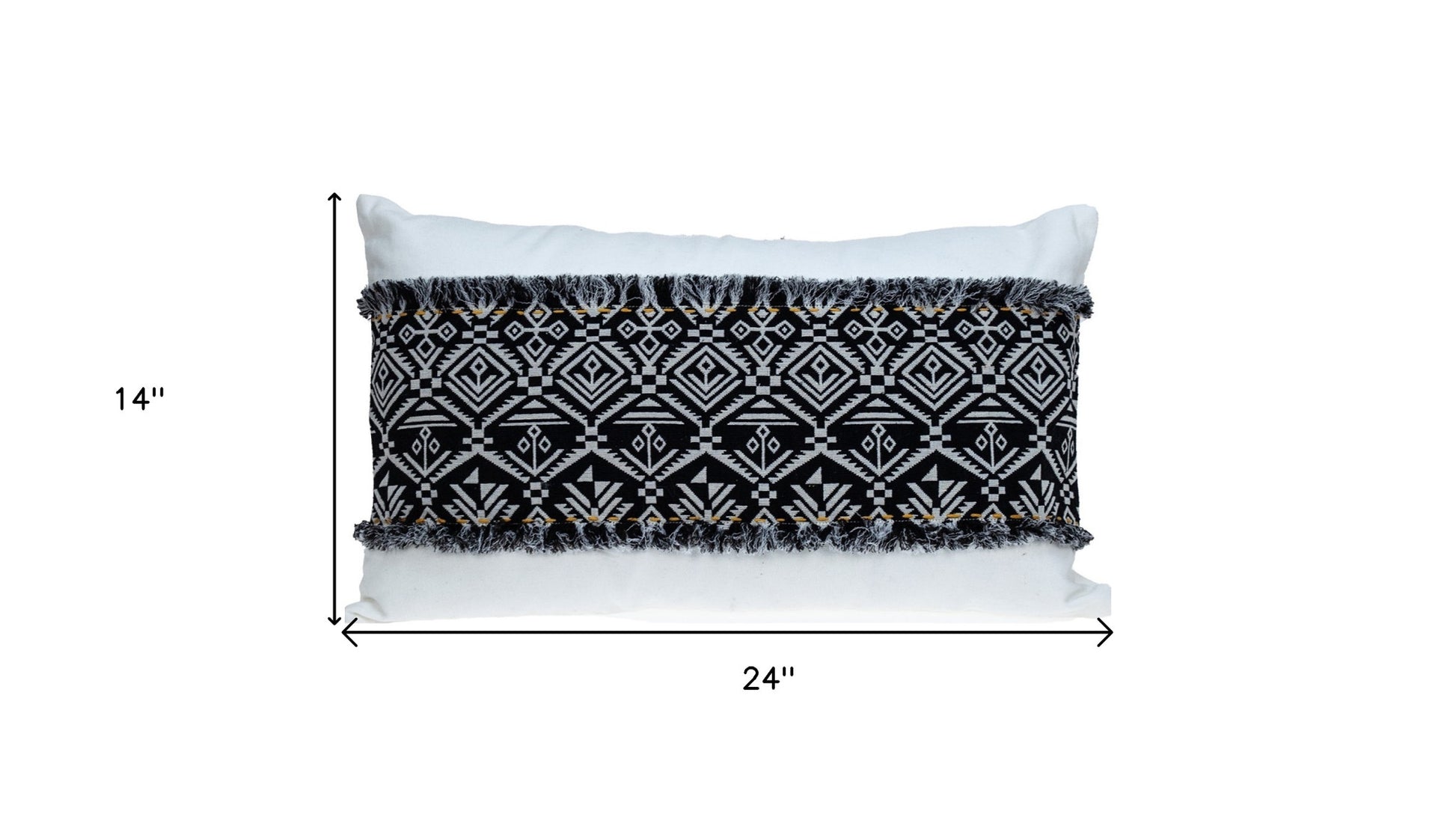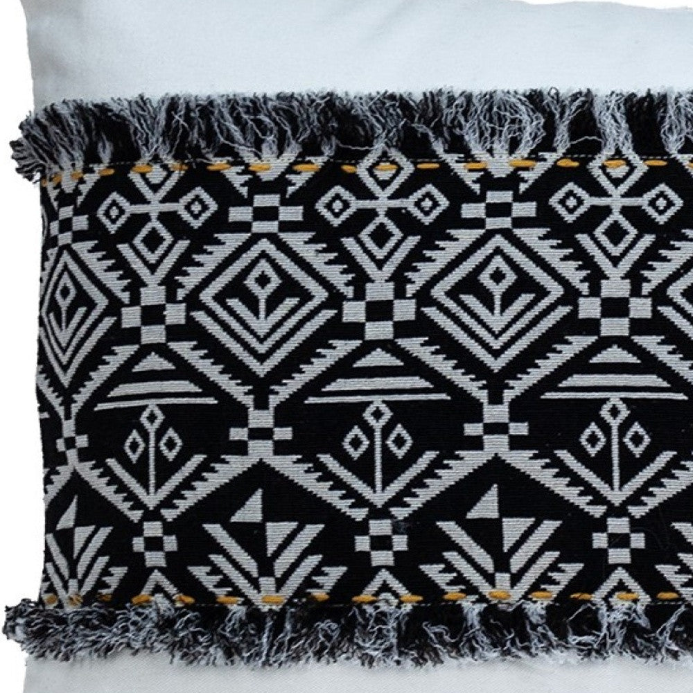 A rectangular lumbar support pillow with a highly contemporary and eye-catching design that doubles as a stylish throw pillow. The Black and White Patched Throw Pillow has a stylish rectangular geometric pattern patched against a full white body, which gives it an extraordinarily dapper look on any furniture. It is a 100% cotton rectangular-shaped pillow that offers amazing support to your lower back. 24” x 14” x 5”