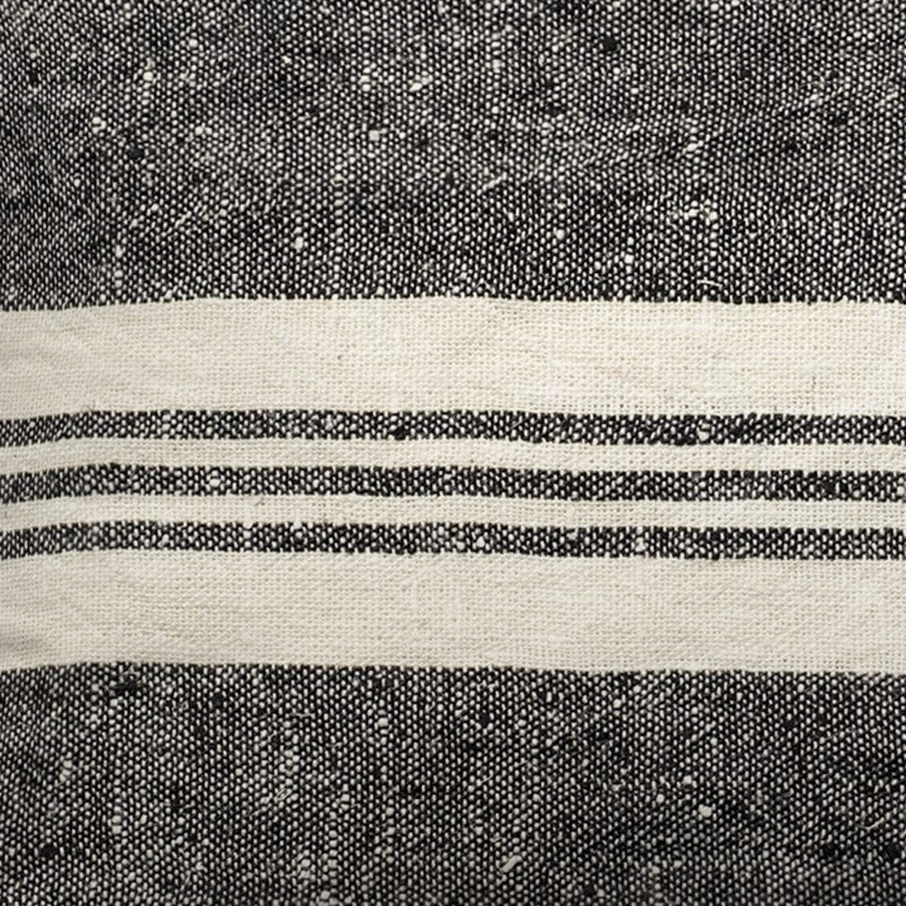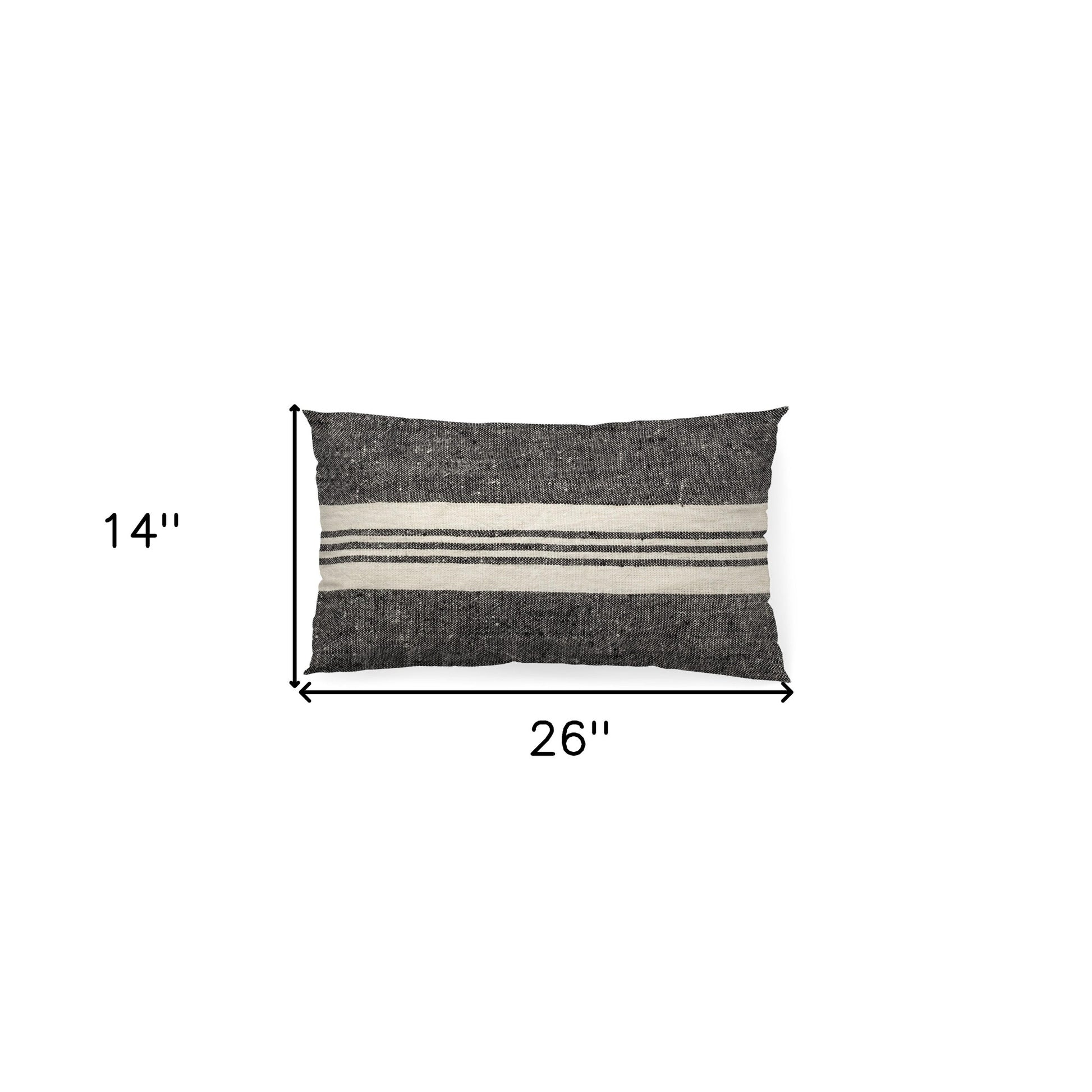 With this Black and White Striped Lumbar Accent Pillow Cover you can add the perfect finishing touch to your couch. This pillow cover is made highly durable and soft material that provide comfort beyond measure. The design on the cushion features a stonewash black background with two thick white lines along with three thinner lines in the middle of the cover. The back has a zip closure that ensures your cushion stays in there securely. The neutral color palette will look great on top of any couch, bed or chair you have and go with any interior style you have in your home. 14" H x 26" W x 1" D