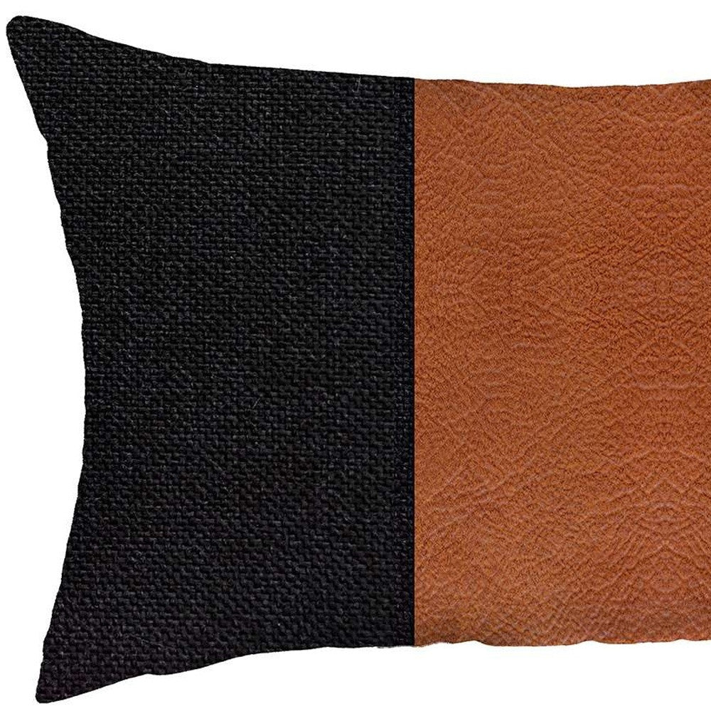 Celebrating the essence of boho-chic styling, this Black Base and Brown Center Lumbar Throw Pillow will spruce up any living space while captivating the gaze of the guests. The elegant charcoal black base flanks a rustic brown vegan faux leather in the middle for a striking contrast. The pillow comprises of polyester, Pvc, and Pu for optimum durability while being OEKO-TEX Standard 100 certified to ensure highest product safety. It sports a recycled poly filling insert for a soft and fluffy feel, making it an ideal piece for your bedroom, living room, or sitting space. Made to stand the test of fashion and function, this pillow is handcrafted in Turkey for optimum quality while the hidden zipper provides a seamless finish all-around for a smooth feel on the touch. Simple yet exclusive in its color palette and design pattern, this comfortable lumbar pillow will add a classic edge to any modern or bohemian setting. 12” x 20” x 1”