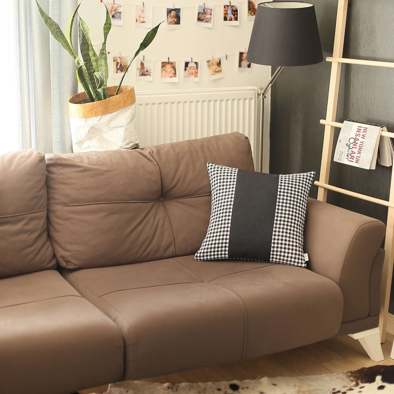 Emanating a classic bohemian vibe in a modern color palette, this Black Houndstooth Decorative Throw Pillow will pull off the aesthetics of any contemporary or bohemian styling. The on-trend black houndstooth pattern in jacquard weaving laid a stylish foundation to flaunt a charcoal black section in the middle. Flaunting the finesse of Turkish craftsmanship, this pillow is made of 100% premium polyester to ensure enhanced durability while the OEKO-TEX Standard 100 certification speaks of product safety. The hidden zipper closure provides a neat and seamless look around the edges that feels smooth and luxurious on the touch. This pillow comes with a soft poly filling inside with a cotton cover that will last for a long time, providing warmth and comfort. Pair this classic decorative pillow with any neutral or vibrant schemes for an elegant ensemble. 18” x 18” x 1”