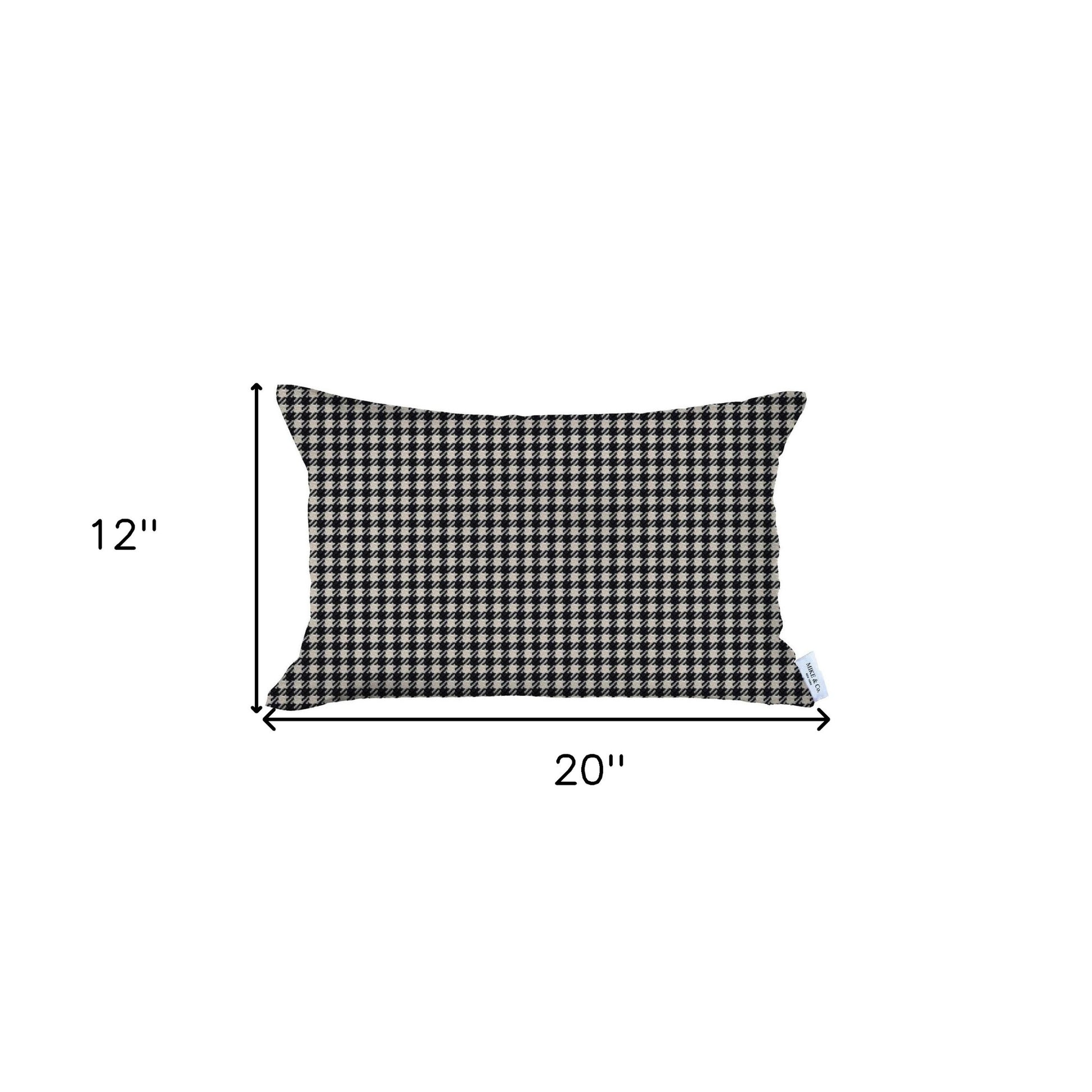 Upholding a rich and luxurious vibe, this Black Houndstooth Lumbar Throw Pillow will be a sophisticated addition to any modern or contemporary setting. Featuring the classy houndstooth checkered pattern in black over an ivory base, this pillow accentuates an elegant combination. Made with care by Turkish artisans, this pillow features OEKO-TEX Standard 100 certified polyester fabric to ensure quality and product safety that will last for ages with low maintenance. The hidden zipper closure adds to a smooth finish for a soft and sumptuous feel on the touch while the soft poly filling offers maximum comfort. Besides serving as a sophisticated accent to complement any furniture, this decorative throw pillow will add a sense of class and comfort to your home. 12” x 20” x 1”
