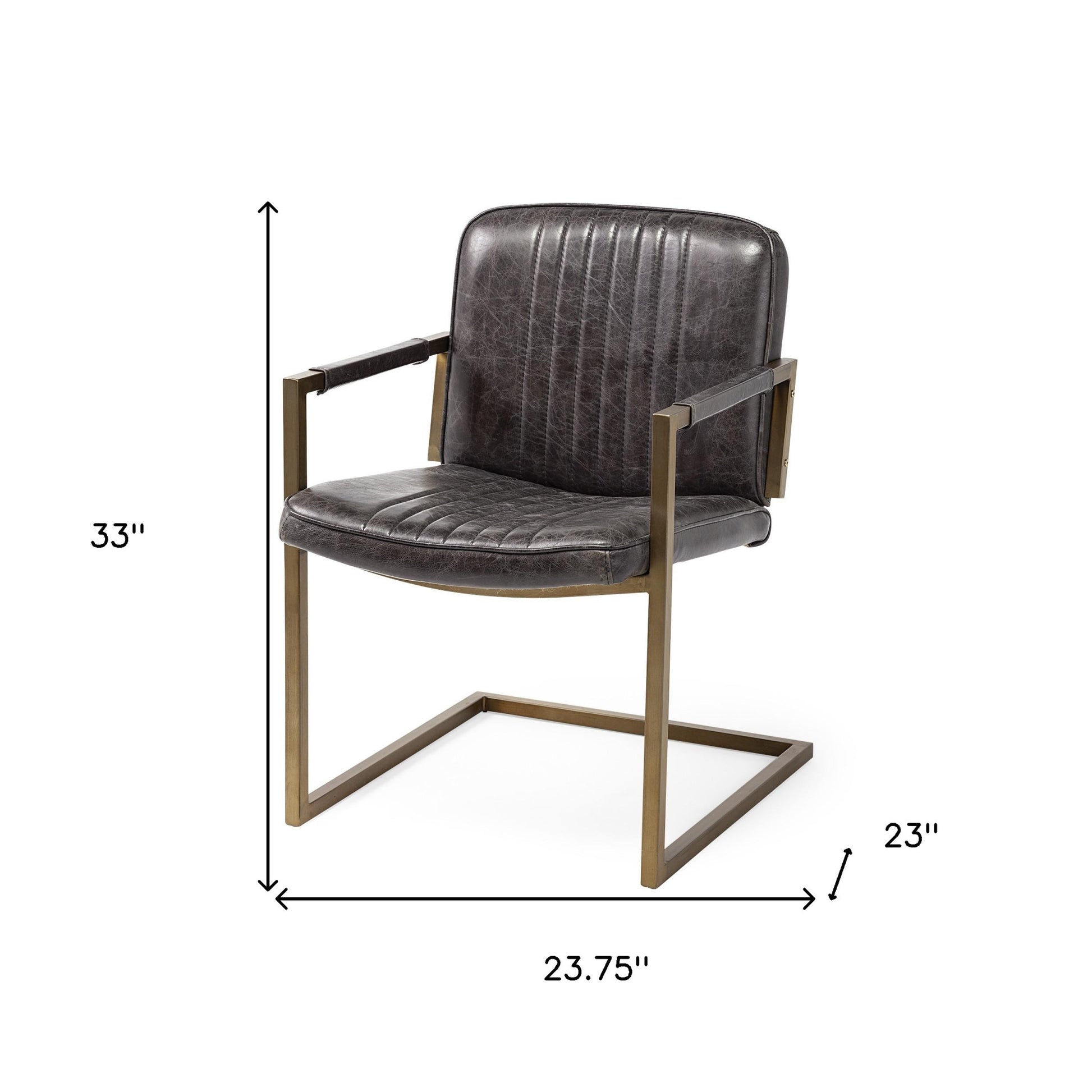 Black Leather Seat Accent Chair With Brass Frame