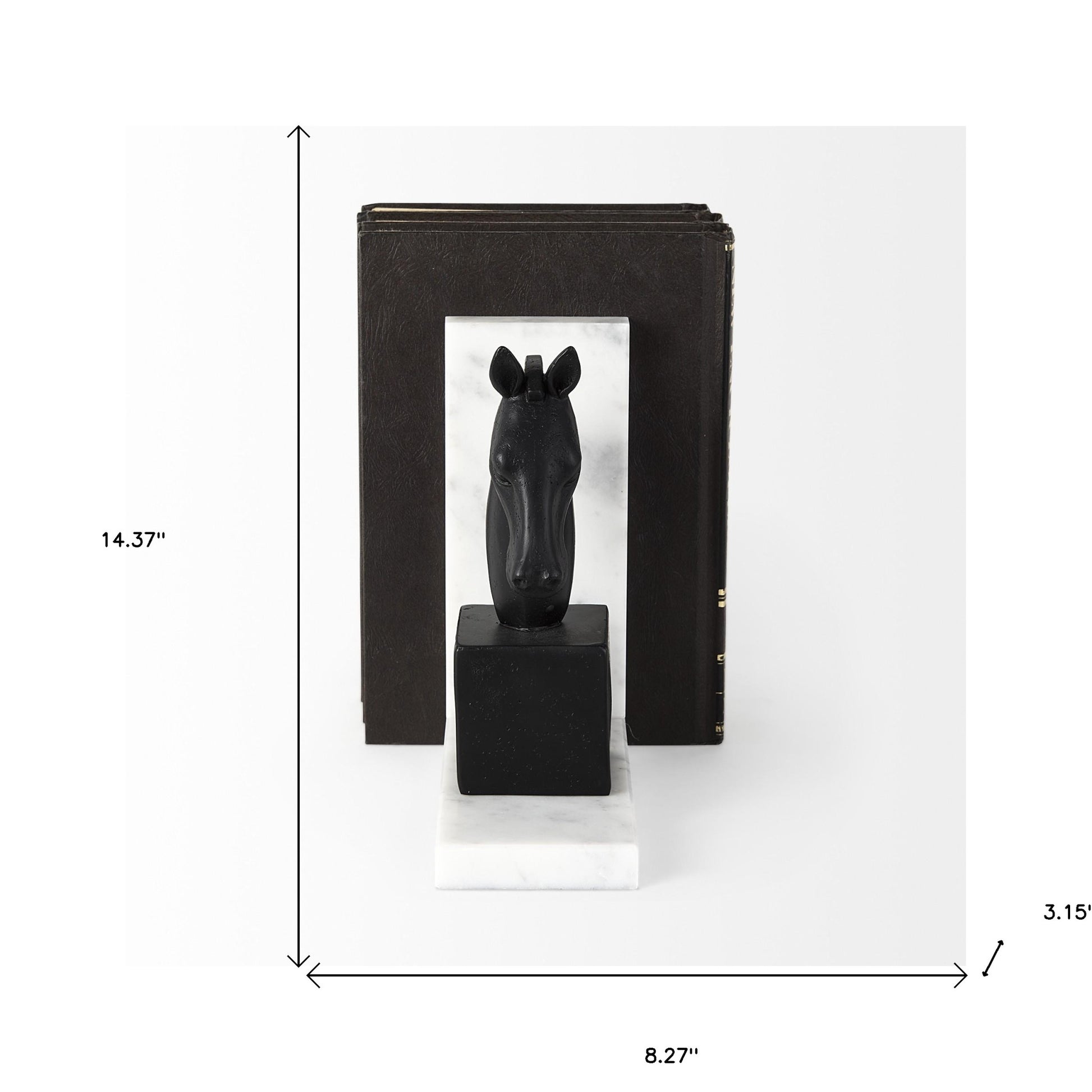 Unique and magestic, add a fun yet elegant touch to your bookshelf with these Black Stallion on White Marble Bookends. These bookends are made from resin and marble which makes them sturdy and durable enough to hold as many books as you want without slipping or moving around. The bookends are shaped like a stallion finished in a distressed matte black that then sits atop a marble base. You can use these bookends to display your books or you can use them as stand-alone decor pieces as well. The uses of these bookends are versatile and they also make great gifts for both friends and family. 8.2" H x 3.1" W x 14.3" D