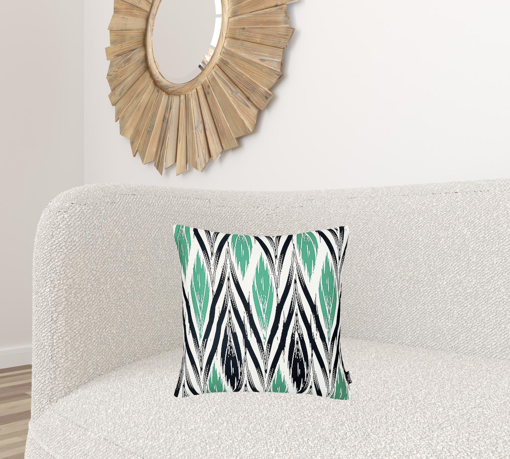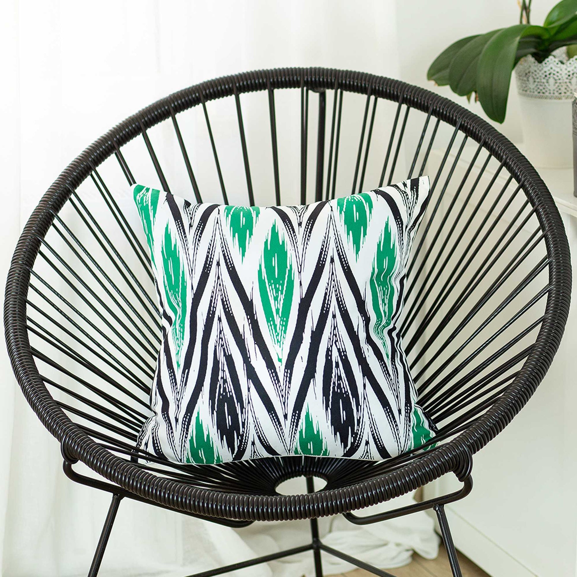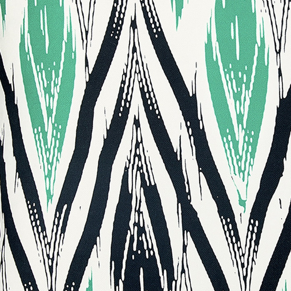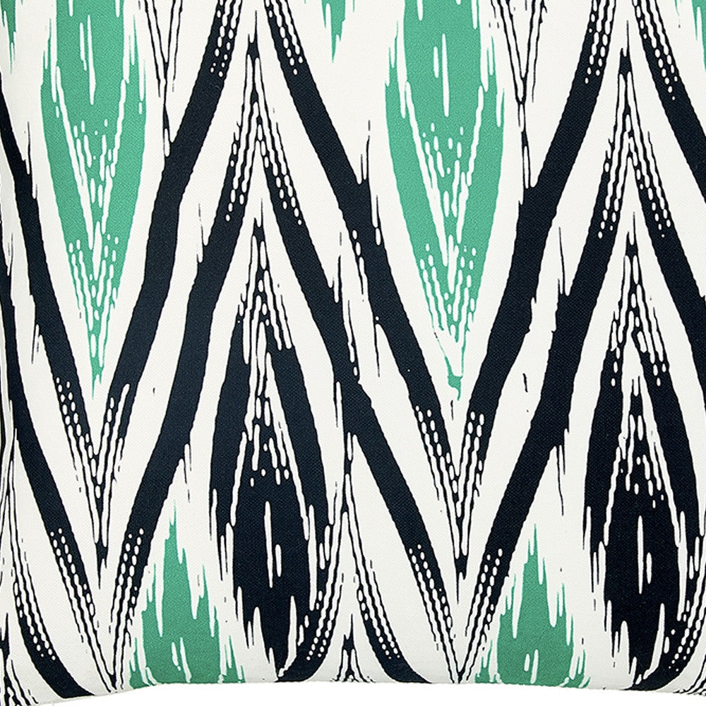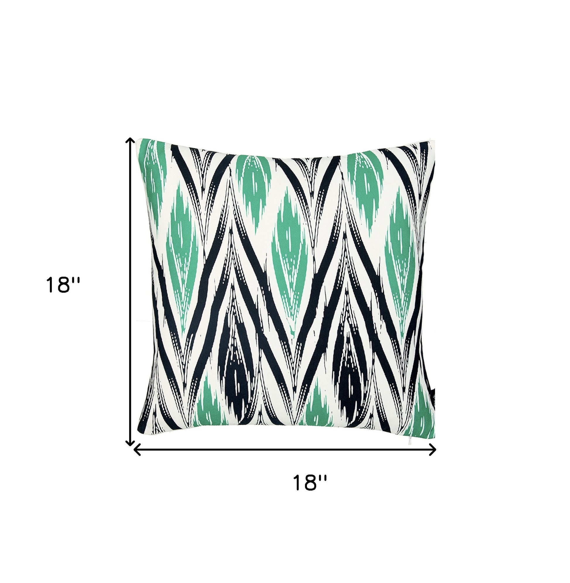 Easily update and refresh your home with this colorful Black White and Green Long Ikat Decorative Throw Pillow Cover. Instantly upgrade your space with this throw pillow cover made with luxurious brushed polyester fabric. The cheerful and colorful patterns will add hue and style to any room. The high quality digital print is in the front, and the back side is solid White. A hidden zipper closure provides a clean and seamless look. 18" X 18"