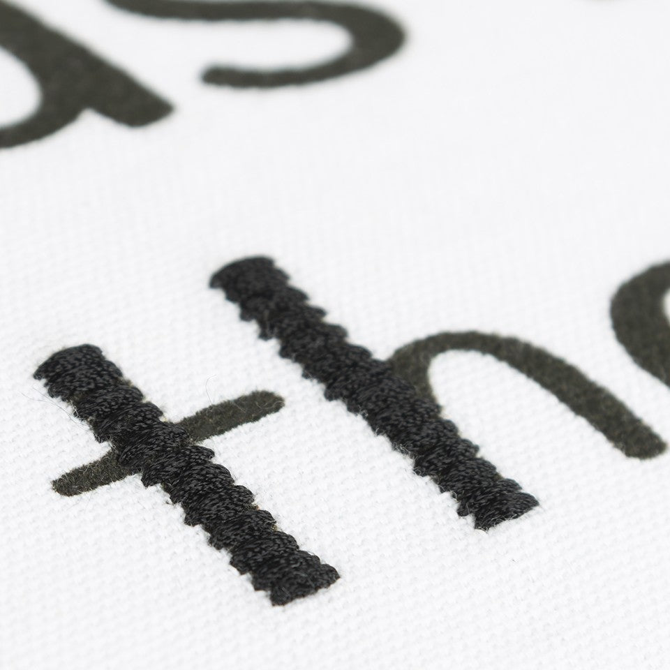 The motivational sentiment flaunted on this Black White Own The Place Decorative Throw Pillow makes it an eye-catching accent to adorn your modern living room. The words printed in black with embroidered accents create a classic contrast over the while base while reminding you to stay strong and keep moving forward no matter what life throws at you. The small flange edge frames the pillow with a seamless finish and the monochrome palette makes it an ideal piece of décor to complement a wide variety of interior styles and decors. Crafted from top-notch cotton fabric with a polyfill insert for enhanced durability and softness. The solid matching back bears a hidden zipper closure for convenience. Make a statement in your living room with this thoughtful decorative throw pillow to induce a sense of positivity in the atmosphere. 20” x 20” x 6.25”