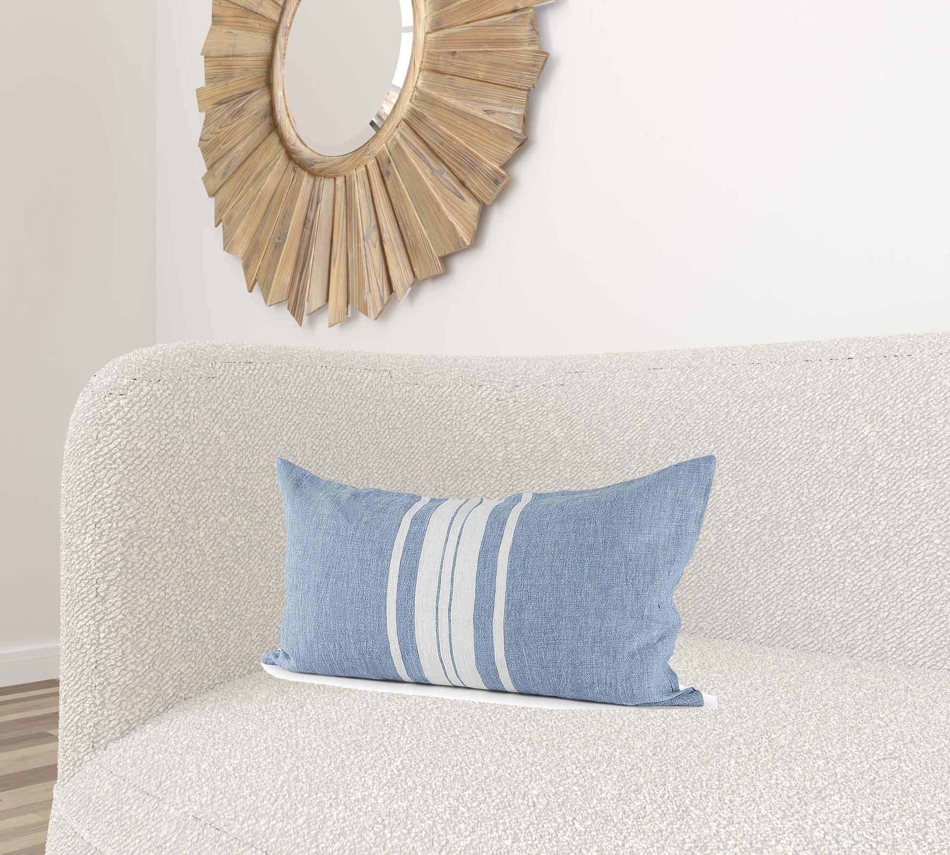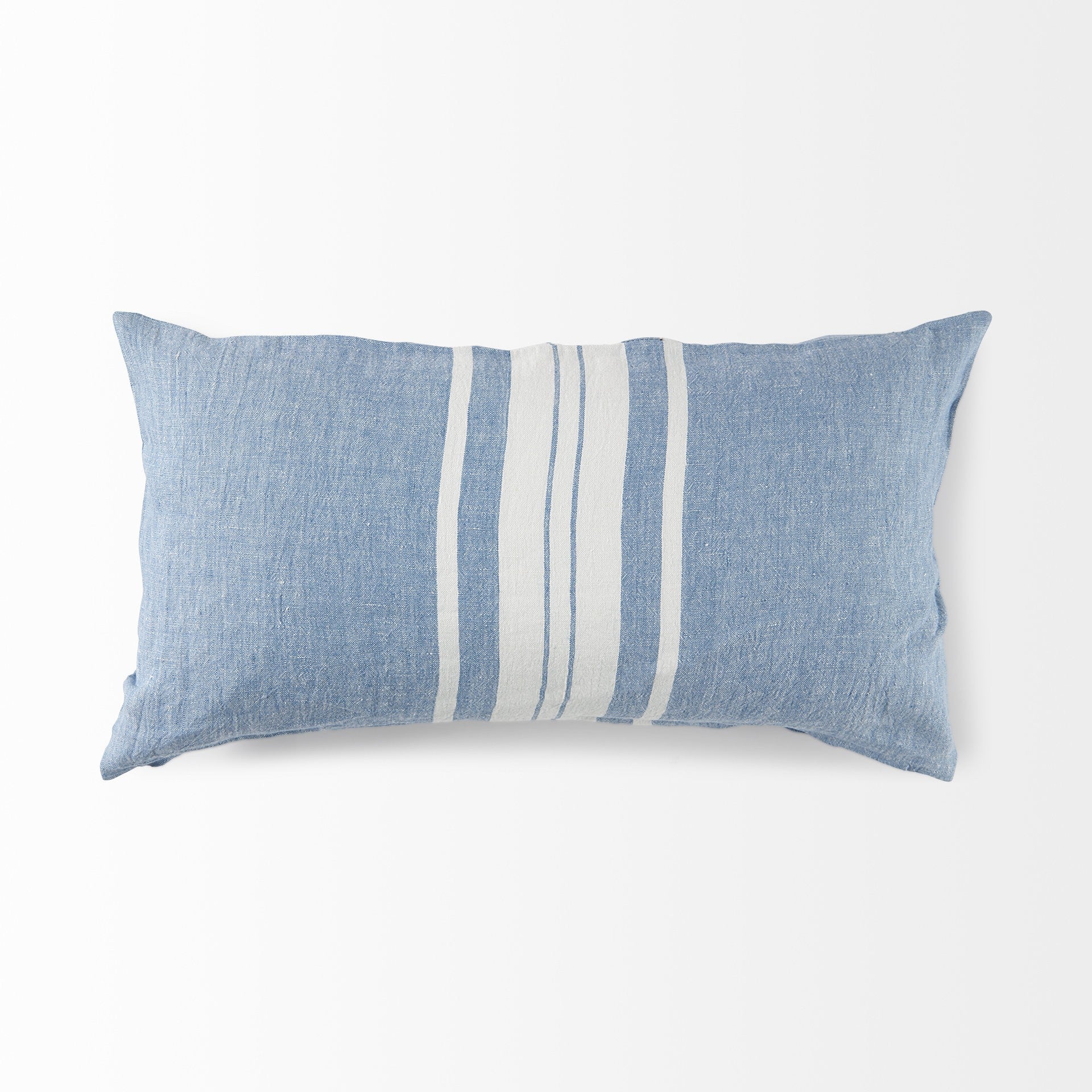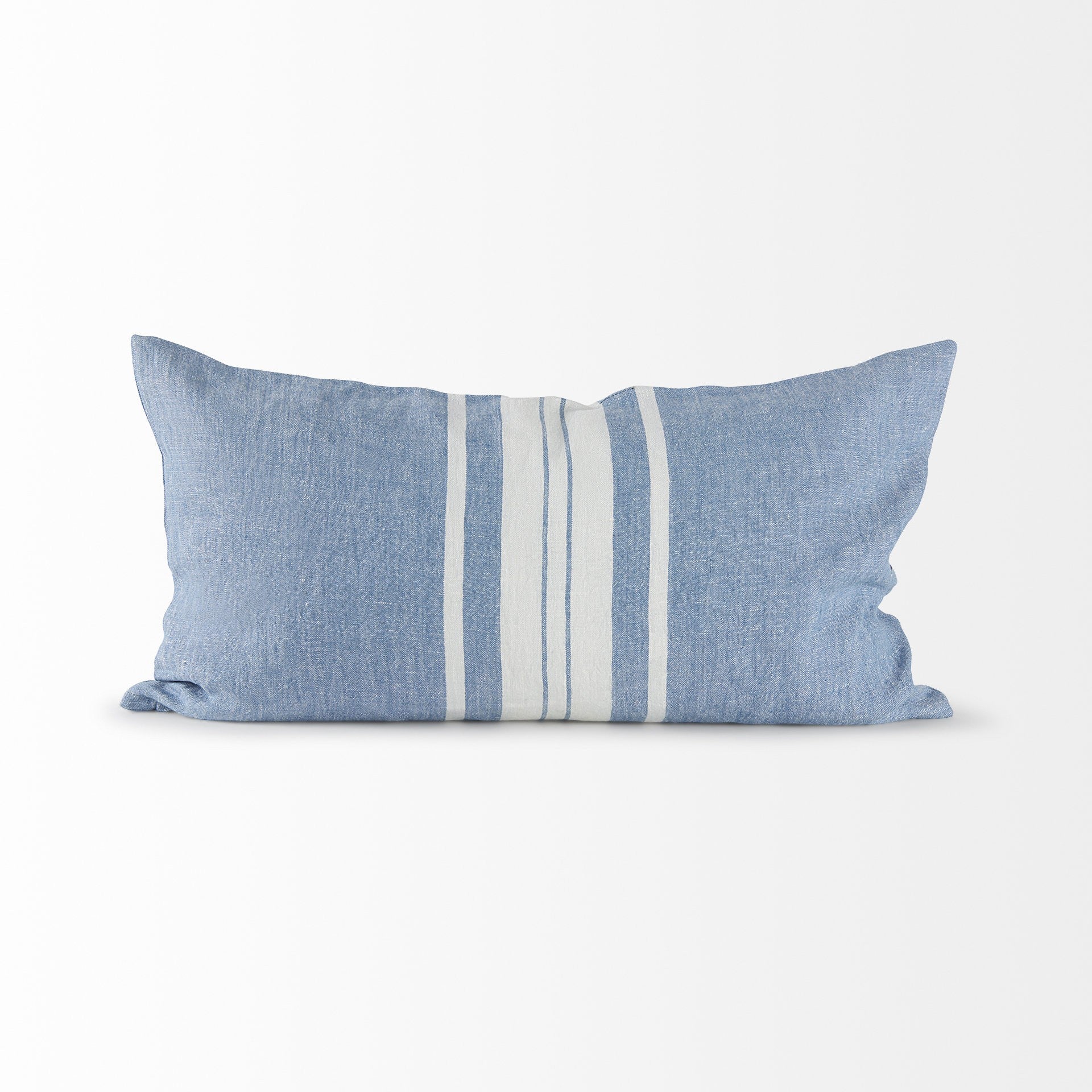 Blue And Cream Middle Striped Lumbar Pillow Cover