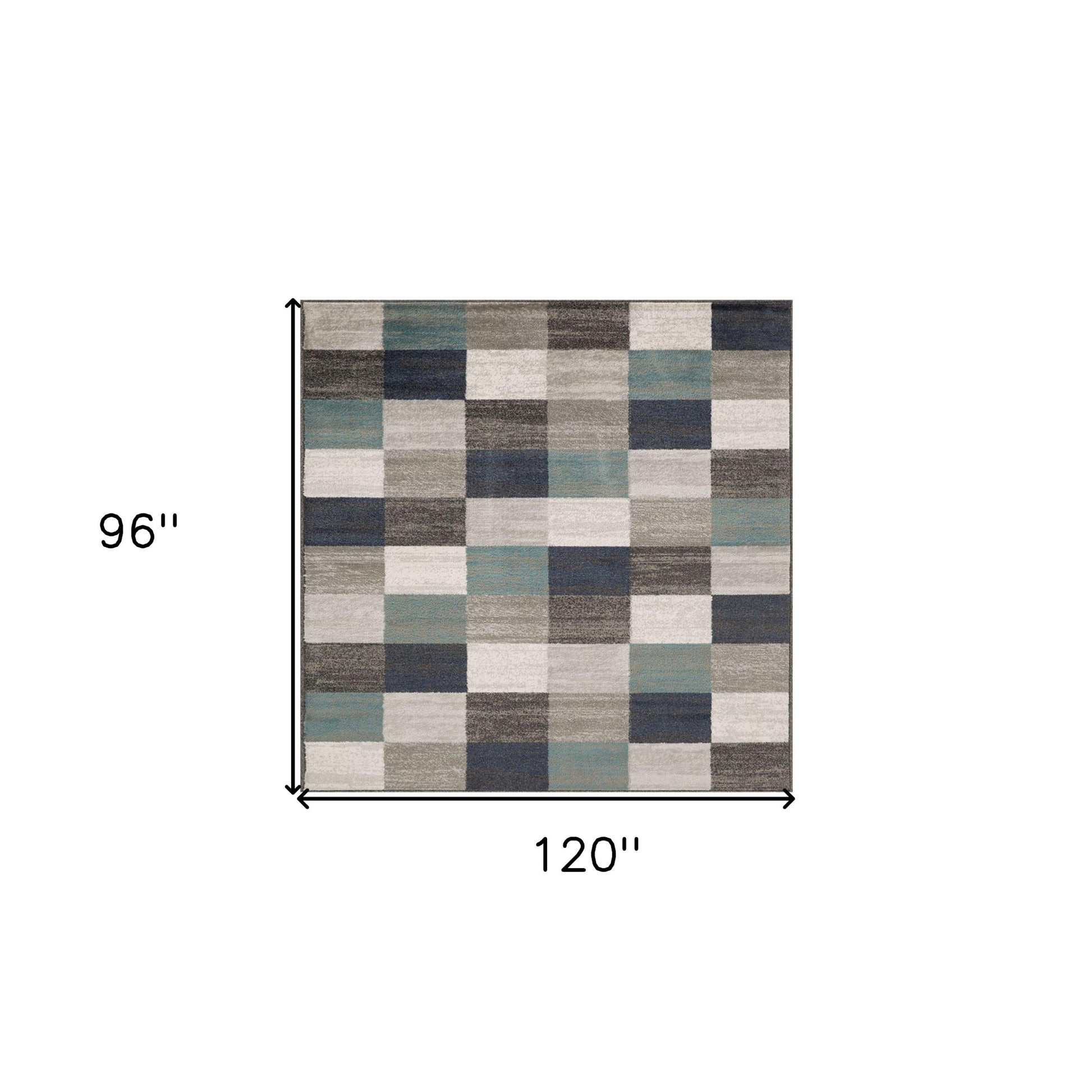 Blue And Gray Geometric Power Loom Stain Resistant Area Rug
