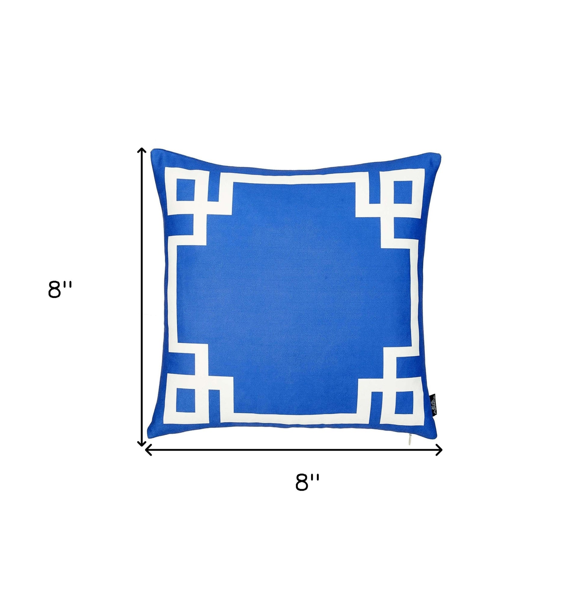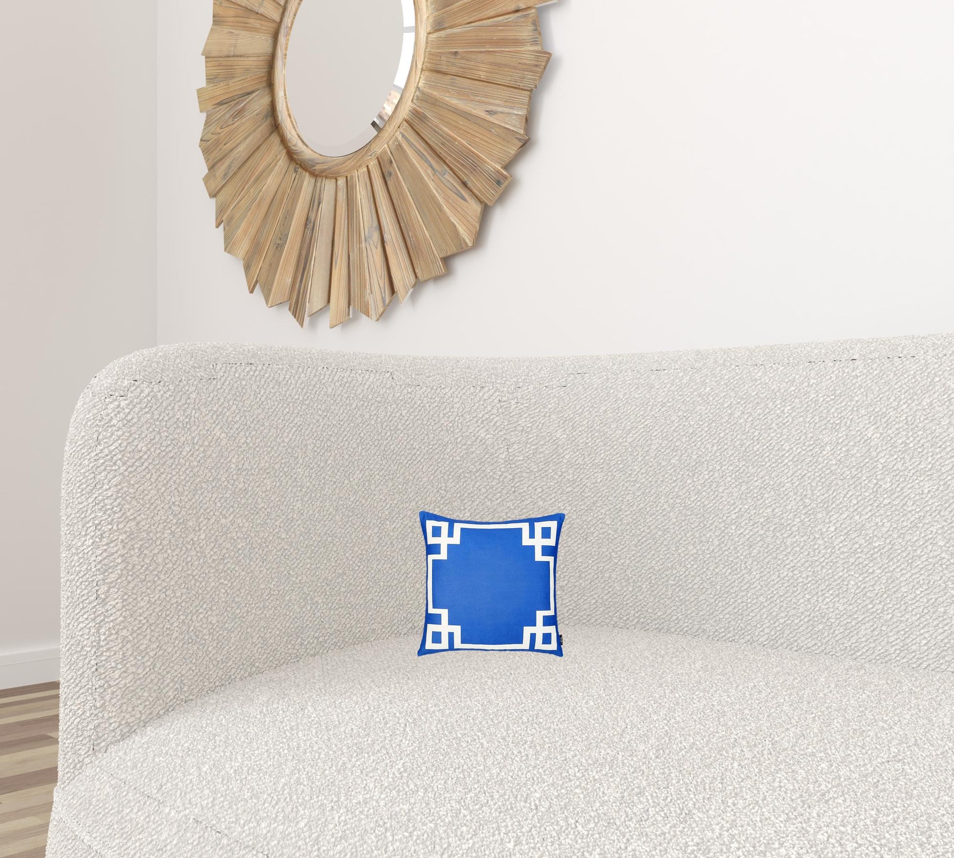 Simple and subtle in its modern pattern and soothing palette, this Blue and White Geometric Border Throw Pillow will add pops of color to your living space. Flaunting an eye-catching geometric design in white over a solid blue base to combine style and sophistication in a compact design. It has high-quality digital printing on both sides, making it simple to place and pair with a variety of decors without worrying about whether there is a right or wrong way to display it. Made in Turkey with OEKO-TEX Standard 100 certified premium polyester fabric for quality, durability, and safety. The pillow has a concealed zipper for a clean look and seamless finish that feels smooth and luxurious to the touch, and the high-quality polyfill insert provides maximum comfort and support to your back when you lean on it. Ideal for any modern or casual home, this decorative throw pillow will be a stunning piece of décor to stand out in your living room. 18” x 18” x 1”