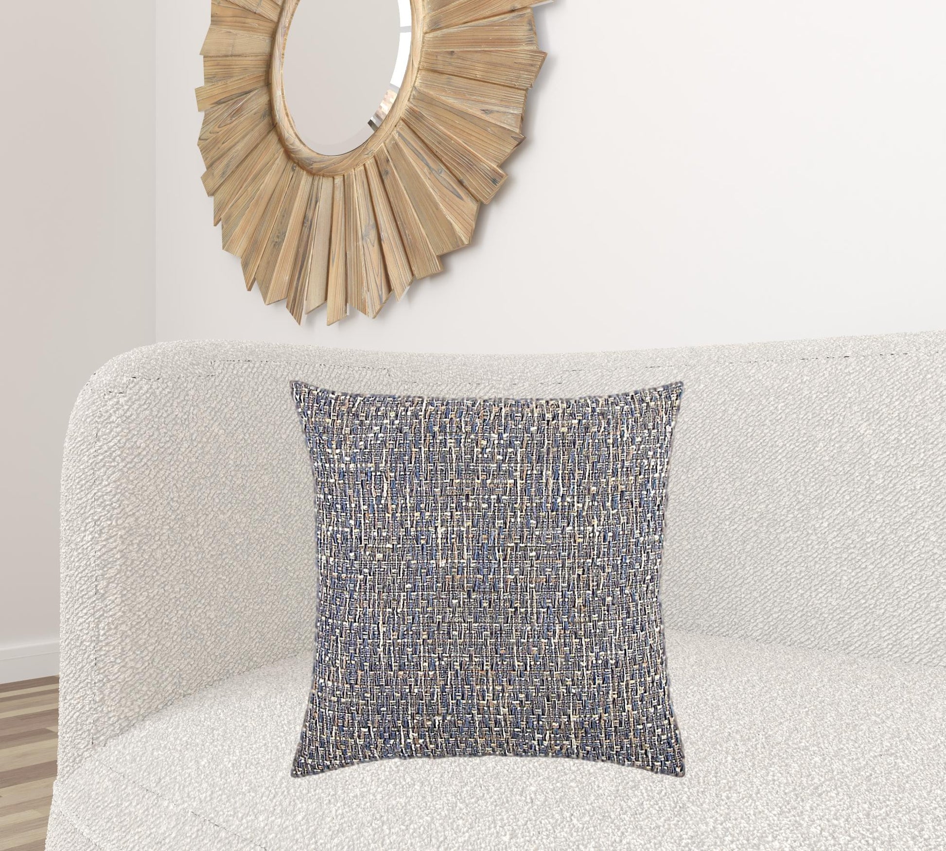 Highlight minimalist style and simplicity into your household with this Blue Gray Metallic Nubby Textured Throw Pillow. The hint of metallic blue and gray hue of this woven pillow gives visual interest and offers a dimensional feel adding value to your interior décor. Made from heathered woven cotton fabric, this polyfill pillow has a light nubby texture for a luxurious feel on the touch. The pillow features a matching cotton back with a concealed zipper closure for easy cleaning, and the knife edge gives crisp and clean sides, allowing it to be used in a variety of interior styles. Allow a traditional look escorted by neutral colors to groom your living space with this throw pillow. 22” x 22” x 6.25”