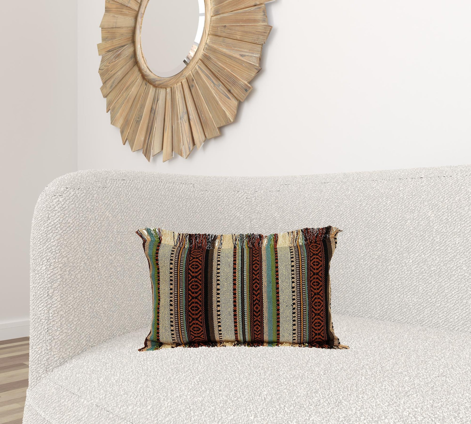 Updating your interior? The Bohemian Fringe Throw Pillow will add a personalized style to your furniture with its different layers of colors and textures. Made of 100% cotton, the highlight of this throw pillow is most certainly the combination of multiple warm colors, patterns, and textures. This design makes it a go-to choice for people looking for unique decorating accents. 24” x 14” x 5”