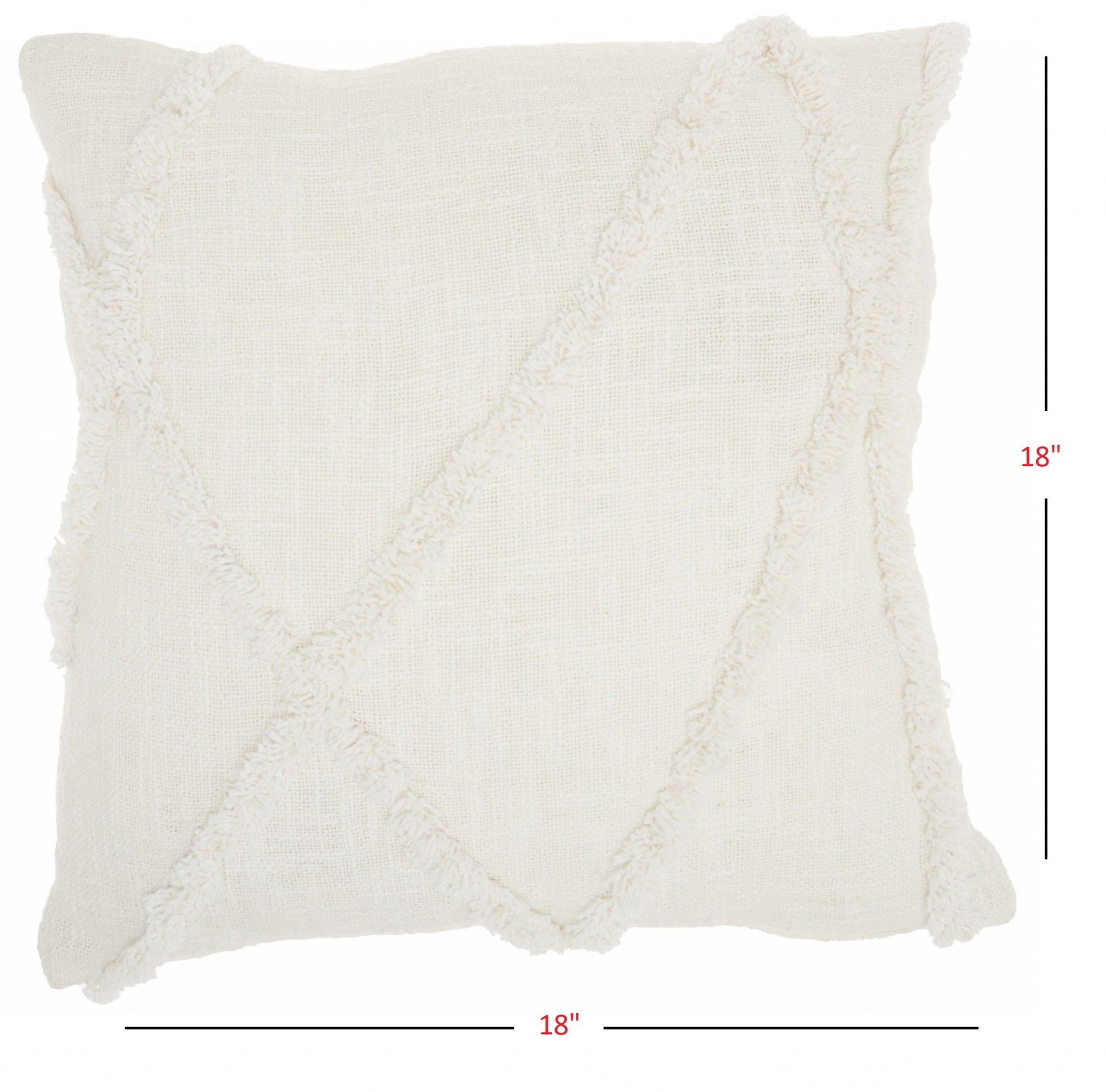 Impressing the viewer and holder with its soft-touch details, this Boho Chic Solid White Textured Lines Throw Pillow will engulf anyone holding it with an unearthing sense of comfort and relaxation. The textured lines are made to entice you and your guests with its high-quality material and playful design. Using 100% cotton fabric, the textured pattern is made to last without losing its original allure. The solid white color works wonders with bright and neutral colors giving a hint of elegance while keeping all of your art pieces in the limelight. Complete your bohemian look while staying true to your creative self with this unique throw pillow. 18” x 18” x 5”