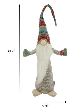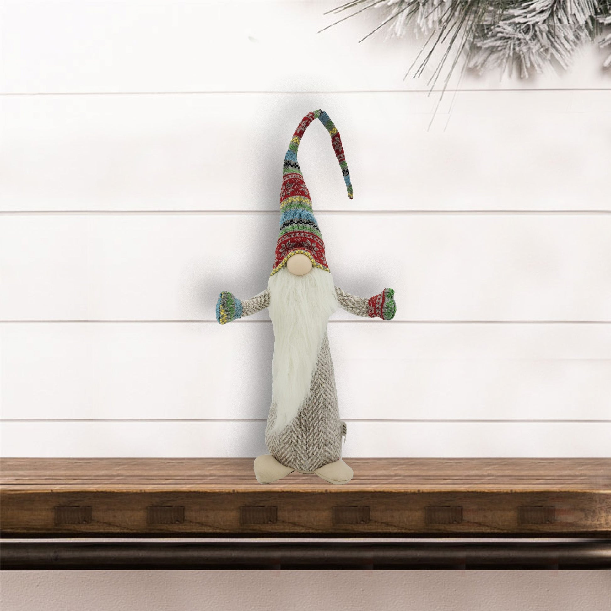 This Bright Color Hat Tall Fabric Gnome needs a home this Christmas. His shoes, long curly tip hat, and mittens are colorful, festive, and ready to hug. He is multicolored and works well in any home any time of the year. His arms are open for hugs and cuddling this season! The colorful hat is unique and cool. 30.7" x 5.9" x 5.9".