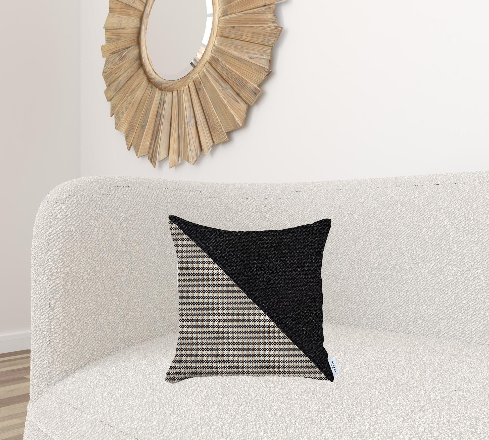 Embracing the sophistication of modern styling, this Brown Houndstooth Modern Decorative Throw Pillow will tie together the aesthetics of your living space with a stylish impression. Made in Turkey with durable polyester fabric which is OEKO-TEX Standard 100 certified to ensure product safety and optimum quality. The fabric should only be spot cleaned to keep its pristine look for years to come. Featuring the houndstooth checkered pattern in brown and white diagonally separated from the solid charcoal black end to create visual intrigue. Made to feel soft and seamless on the touch, the hidden zipper closure all around does the trick while the soft poly insert contributes to the fluffy look and cozy feel. Place this stylish throw pillow on the sofa, couch, or sitting area and it will add a modern-classic vibe to the room. 18” x 18” x 1”