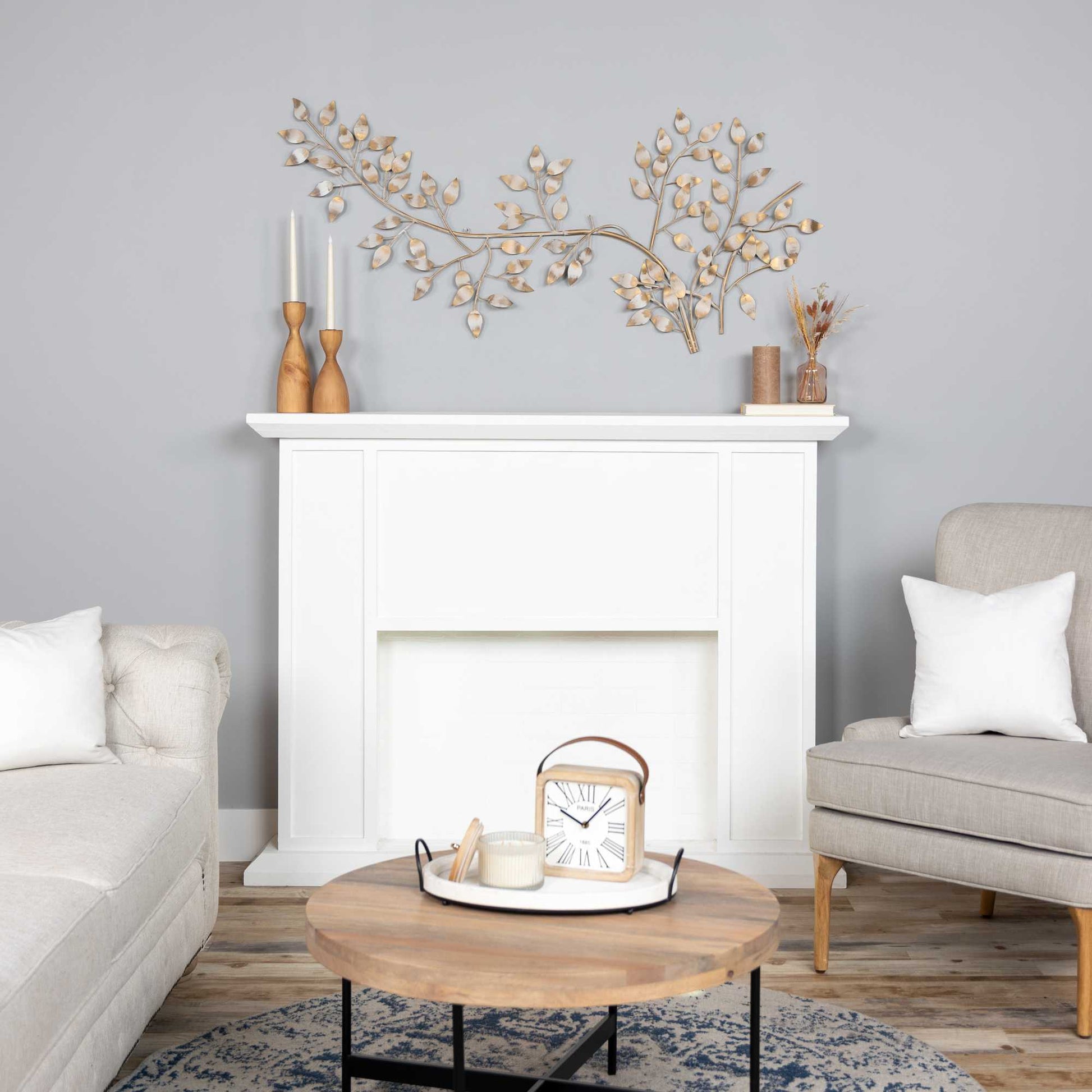 Add an air of fashion to your room and rejuvenate the space with this brushed gold flowing leaves metal wall decor. Hang on your wall to add some up to date fashion and decoration. Instantly liven up your space with this art that brings color and dimension to your walls. 28-inch H x 60-inch W x 1.25-inch D