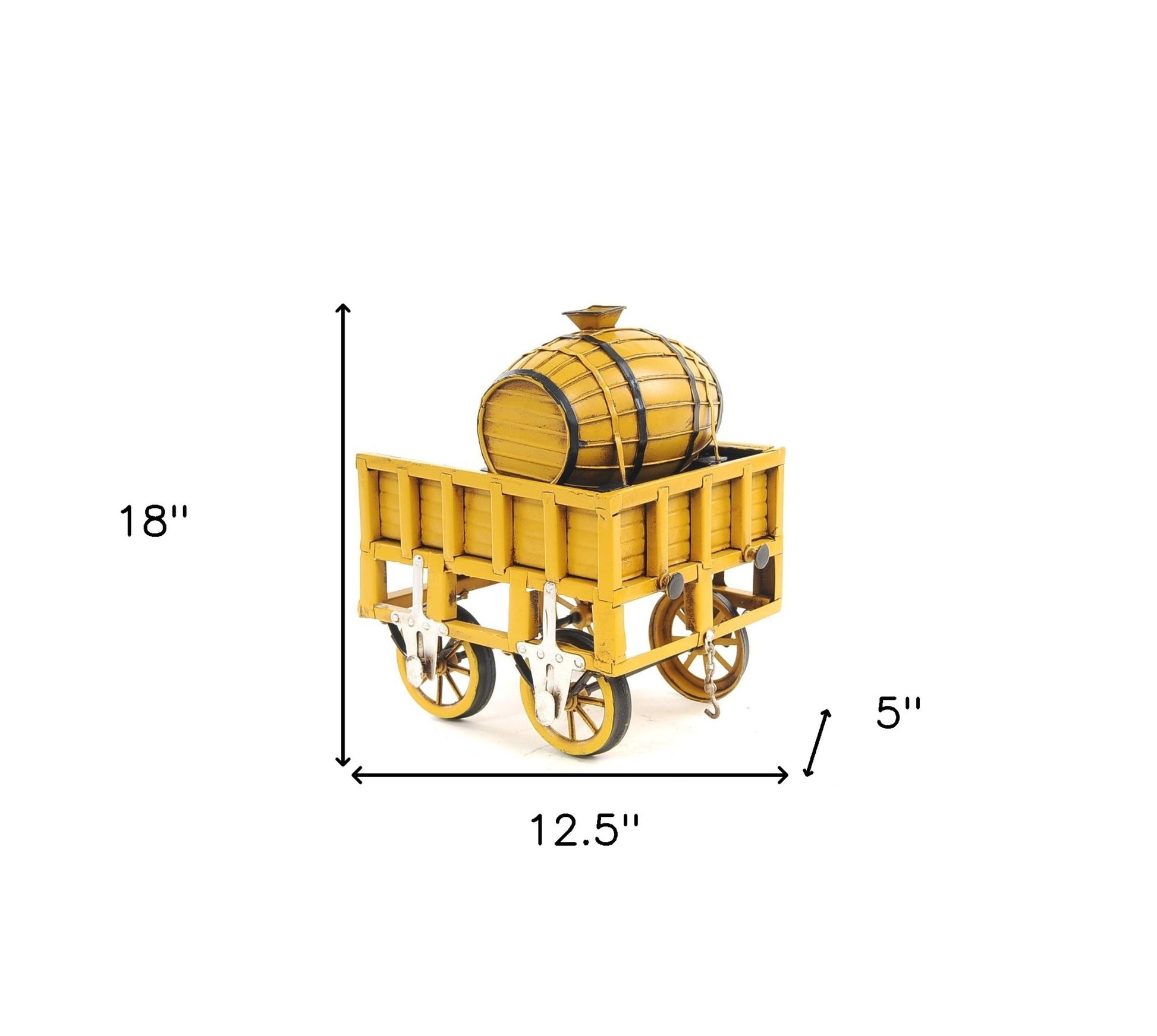 The Yellow Rocket Steam Engine Model Train considered by many the most advanced locomotive of its day. This handcrafted model is made with great care by skilled artisans. The sturdy iron frame is coupled with intricate detailes including metal rolling wheels and a detachable tender carraige that is hooked on. The exterior accessories such as the tall smokestack chimney are securely welded on demonstrating the high quality and authenticity of this piece. 12.5" x 18" x 5"