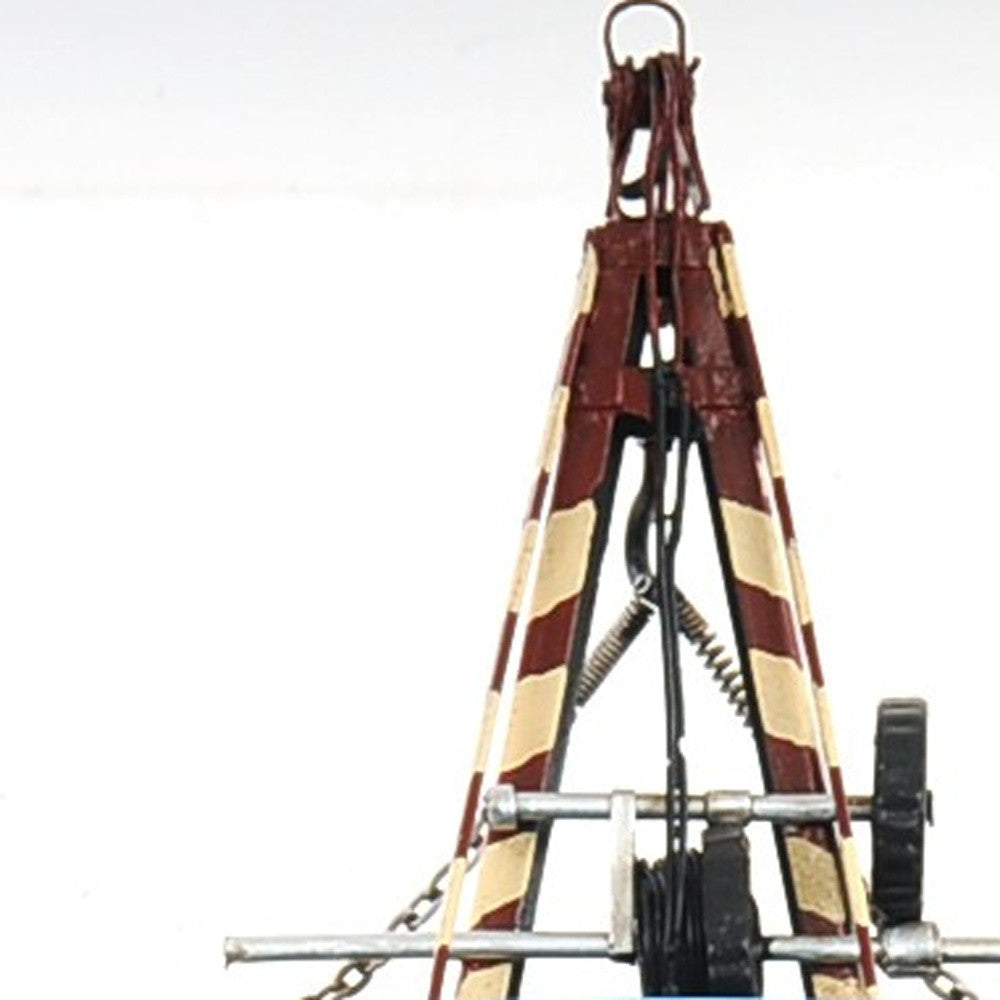 Add some striking desk or shelf décor to your space with this c1931 Ford Model A Tow Truck Sculpture. This Model T replica is an antiqued blue, red, and black colorways while the rolling wheel spokes are mustard, giving this sculpture a decorative twist. Designed to be an authentic looking replica, this unique vintage model is a piece of art that comes complete with rolling wheels with spokes, dashboard details, seats, steerling wheel, insignia on door, and moving chains on the life-like crane in the back. With a scale of 1:12, this cool orignal car replica is designed to be enjoyed by car enthusiasts and Ford history buffs. 7" x 11.5" x 5.5