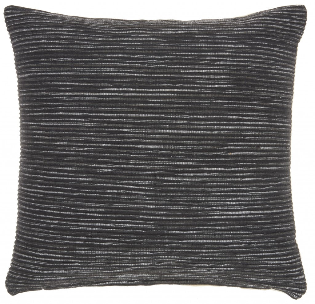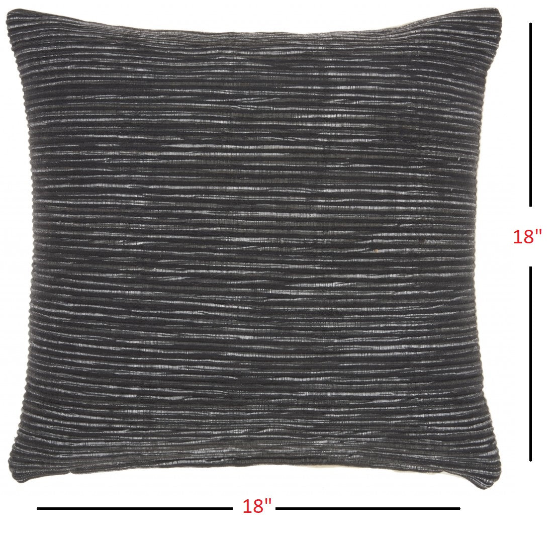 Your calm and comfortable decor will be elevated to perfect heights with the addition of this exquisite Charcoal Distressed Stripes Throw Pillow. The charcoal black stripes give a simple yet robust ambiance in the most casual and elegant way. The bold charcoal black tone provides a strong contrast that can take your casual aesthetic to its optimum look. With the 100% cotton upholstery wrapped throughout the whole of the pillow, you will have the best feel and look for days on end. The bold color tone allows it to be the perfect addition to your creative space in a refined and immaculate way. 18” x 18” x 5”